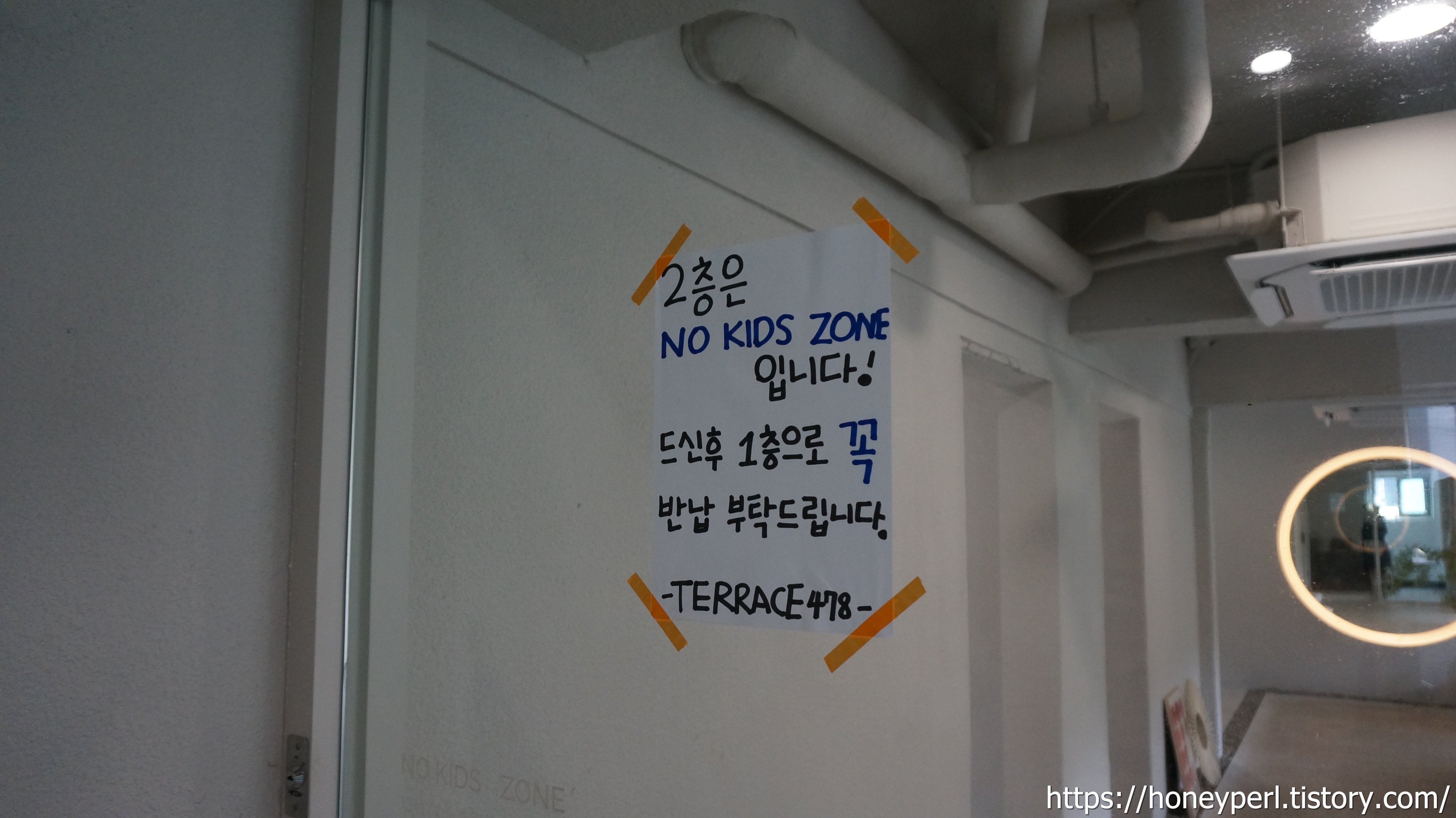 2층은 노키즈존이며 다 먹은 식기는 1층으로 반납해달라는 안내가 나와있었어요.