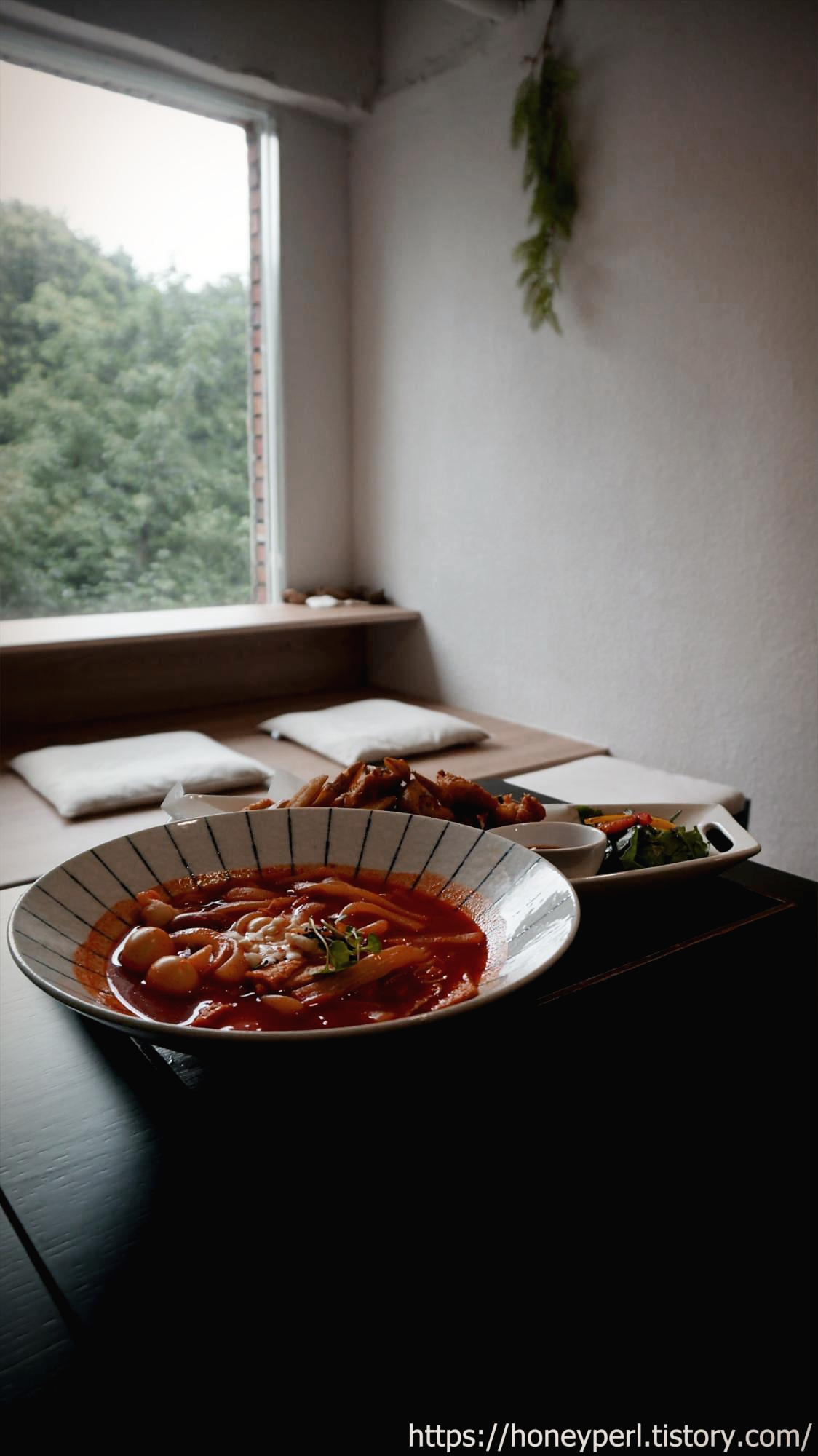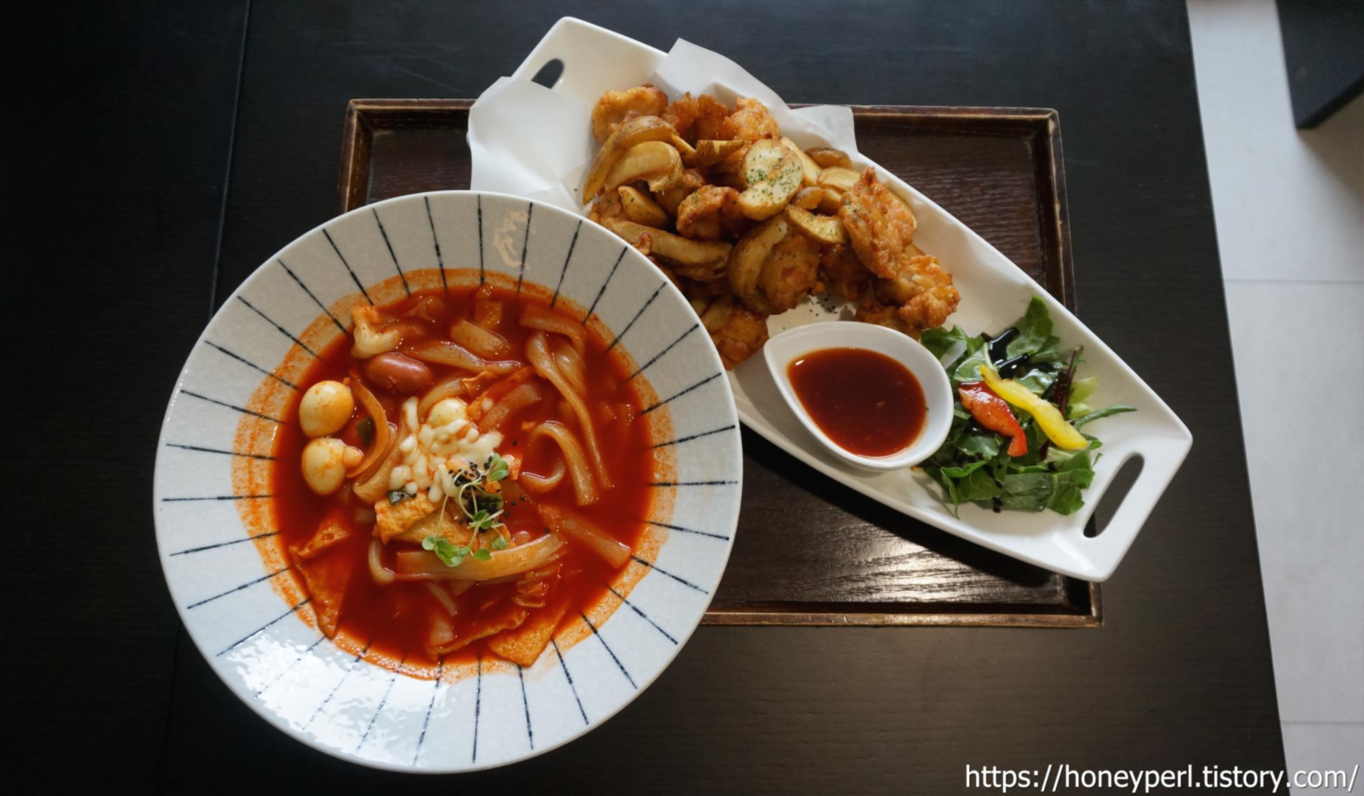 조용한 카페에서 고상한 브런치 대신 떡볶이와 치킨메뉴도 나름 괜츈하더라구요.