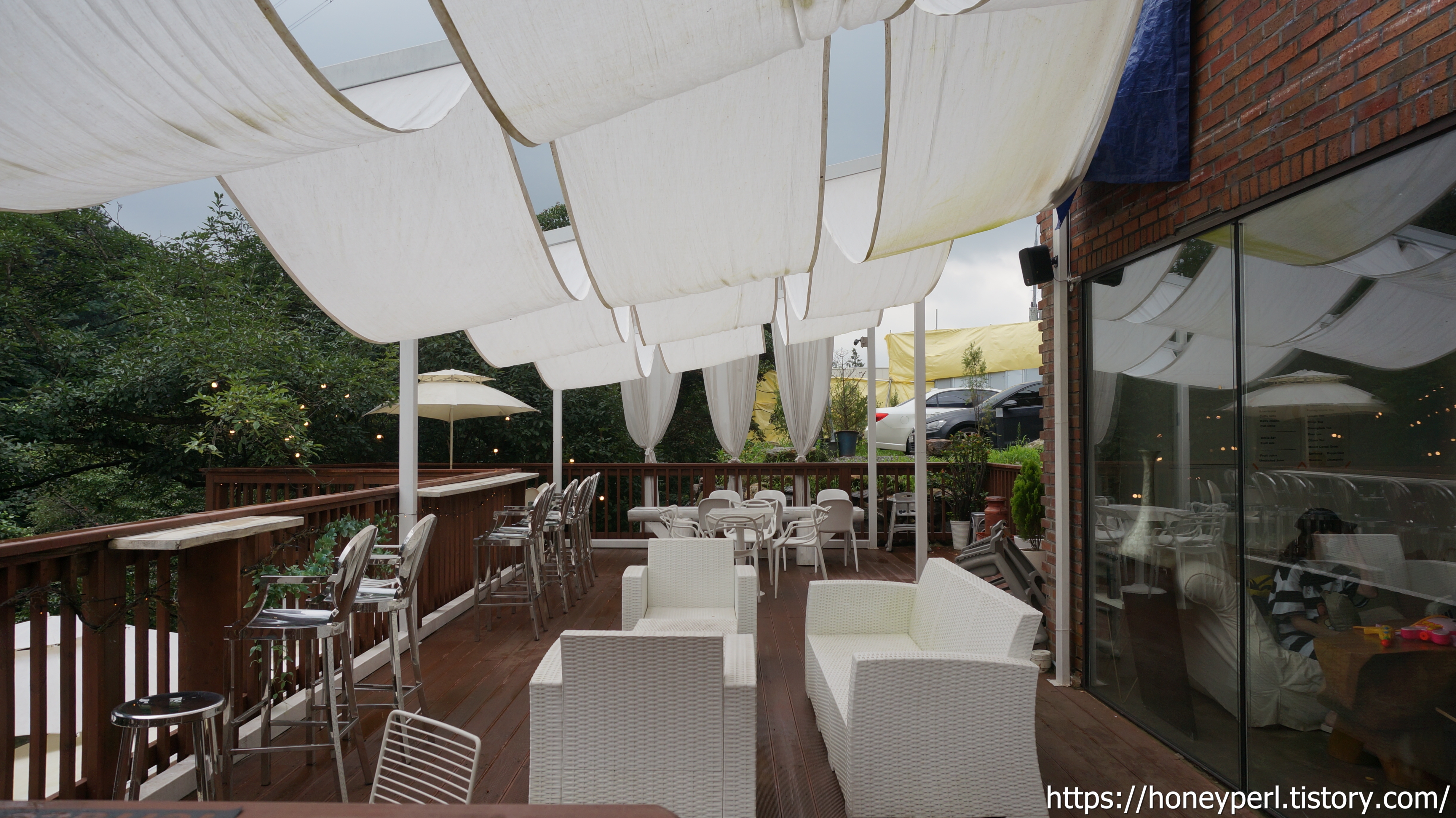운치있는 테라스 좌석이었는데 흐린날 방문이기도 하고 물놀이하는 아이들을 보니 조금은 소란할 것 같더군요.