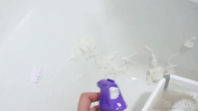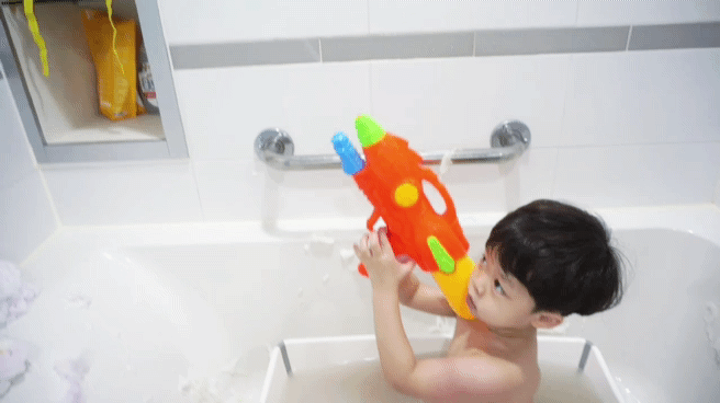 벽에 잘 붙어있던 거품들이 물총을 쏘자 스르르 내려가주니 재미가 두배!