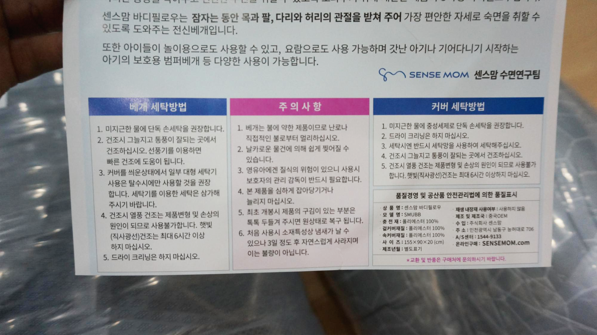 혹시나 바디 필로우 구매하셨던 분들이나 구매하실 분들 세탁방법 보시라고 사진 올려보아요.