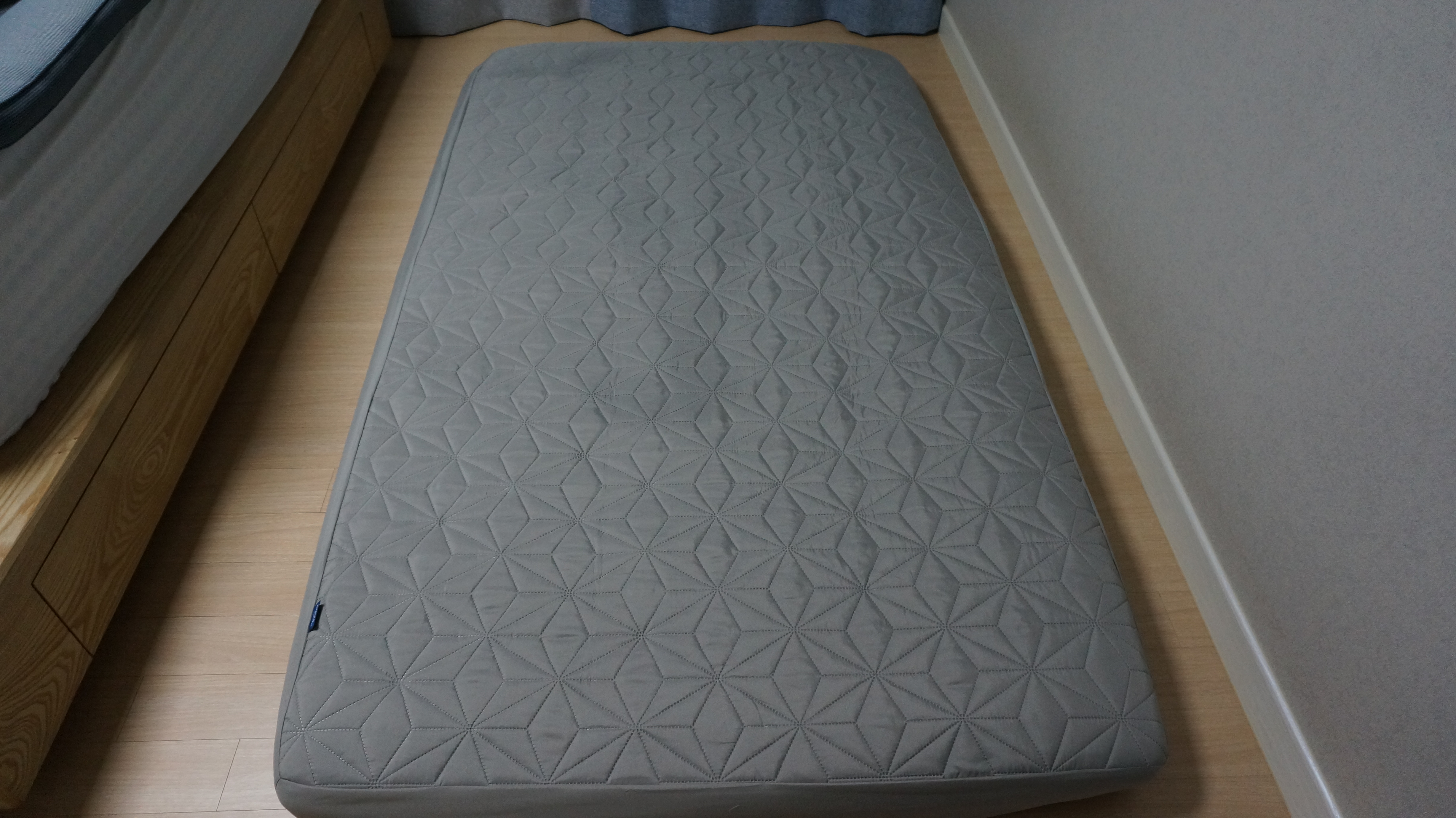 그 전 까지는 신혼때 쓰던 라텍스매트를 동글이 잠자리용으로 사용했었는데 이사를 앞두고 친정엄마집에 더부살이를 계획하면서 아이 잠자리에 쓰던 라텍스매트는 당근마켓에 팔고 새로운 토퍼를 구매했어요.