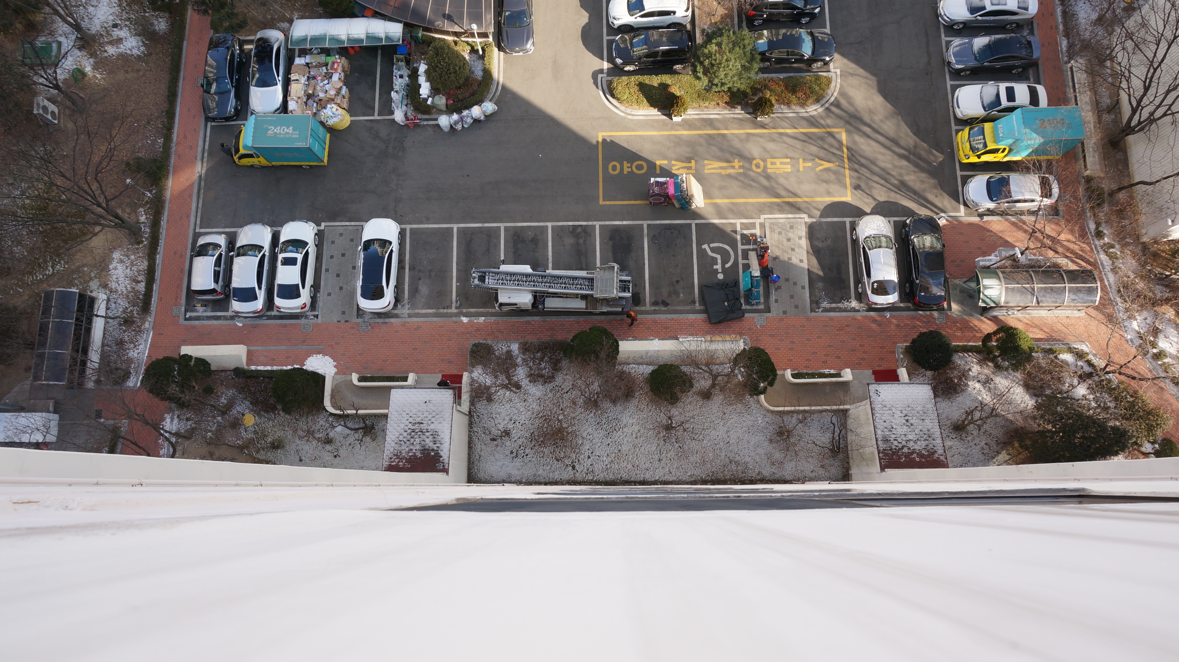 사다리차를 이용해서 이사하기 위해 입주민분들께 양해를 구하고 주차자리를 확보했네요.