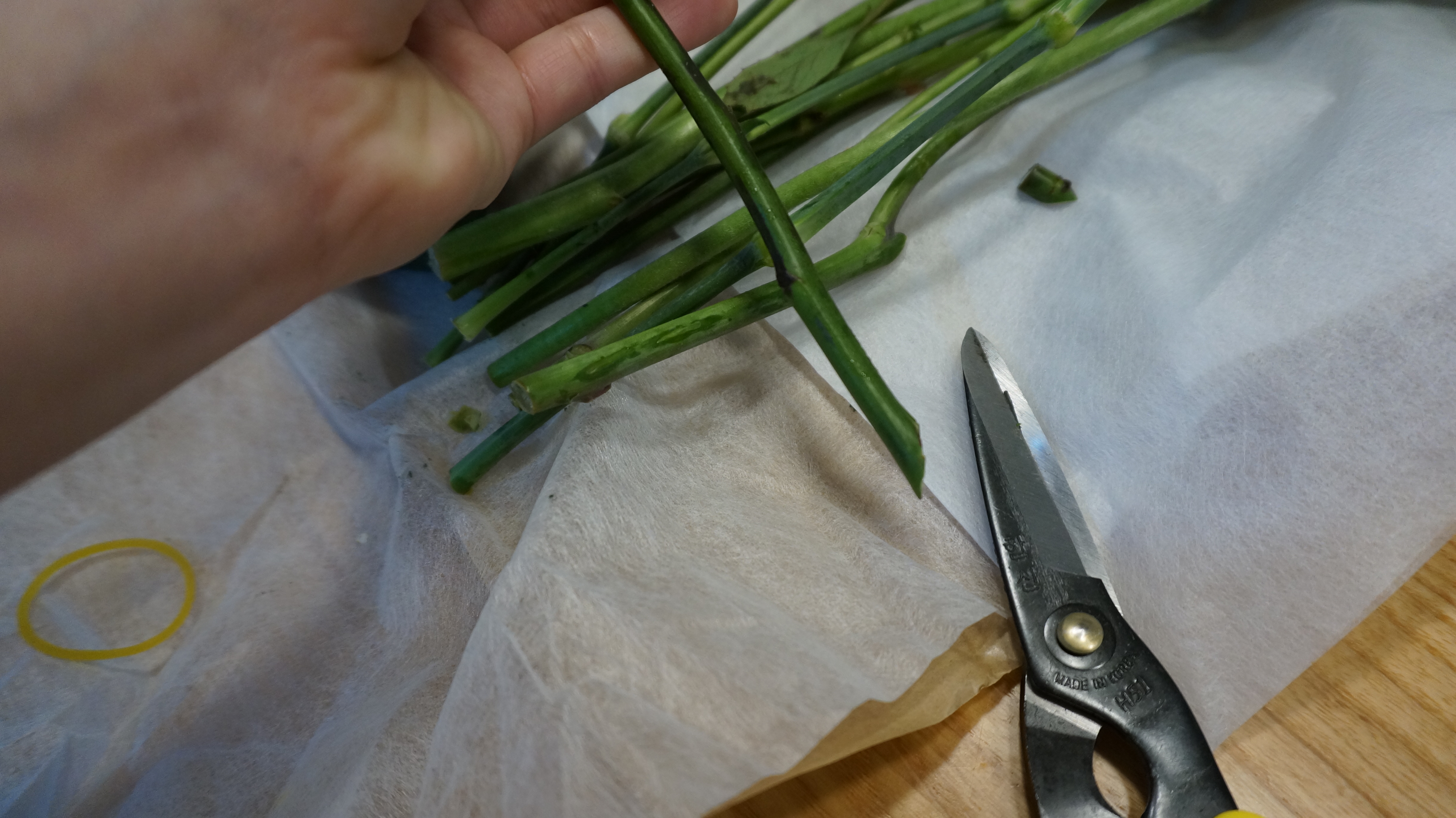 꽃의 끝을 꽃가위로 사선이 되게 잘라줬어요.