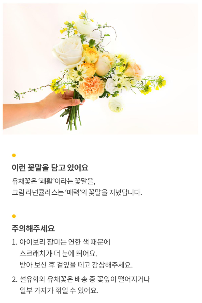 요렇게 나와 있는데 그대로 따라줘야겠죠? 그래야 꽃다발의 예쁨을 오래 볼 수 있을테니까요.