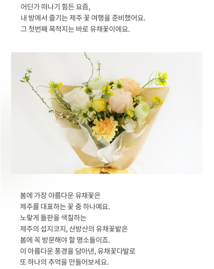 제주의 섭지코지, 산방산 유채꽃밭을 떠올리게 하는 꽃다발로 여행하는 기분을 만끽 할 수 있겠더군요.