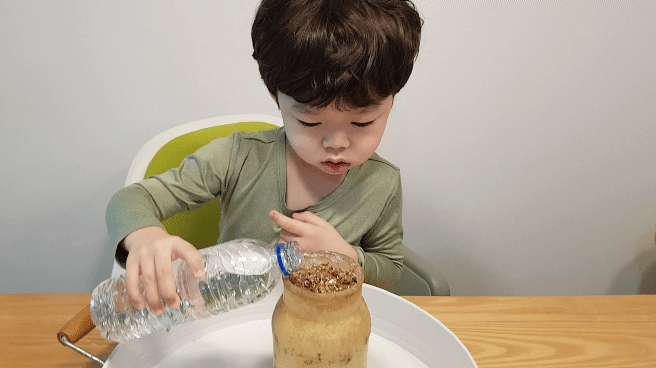 뚜껑을 닫아 병을 거꾸로 세워줍니다.