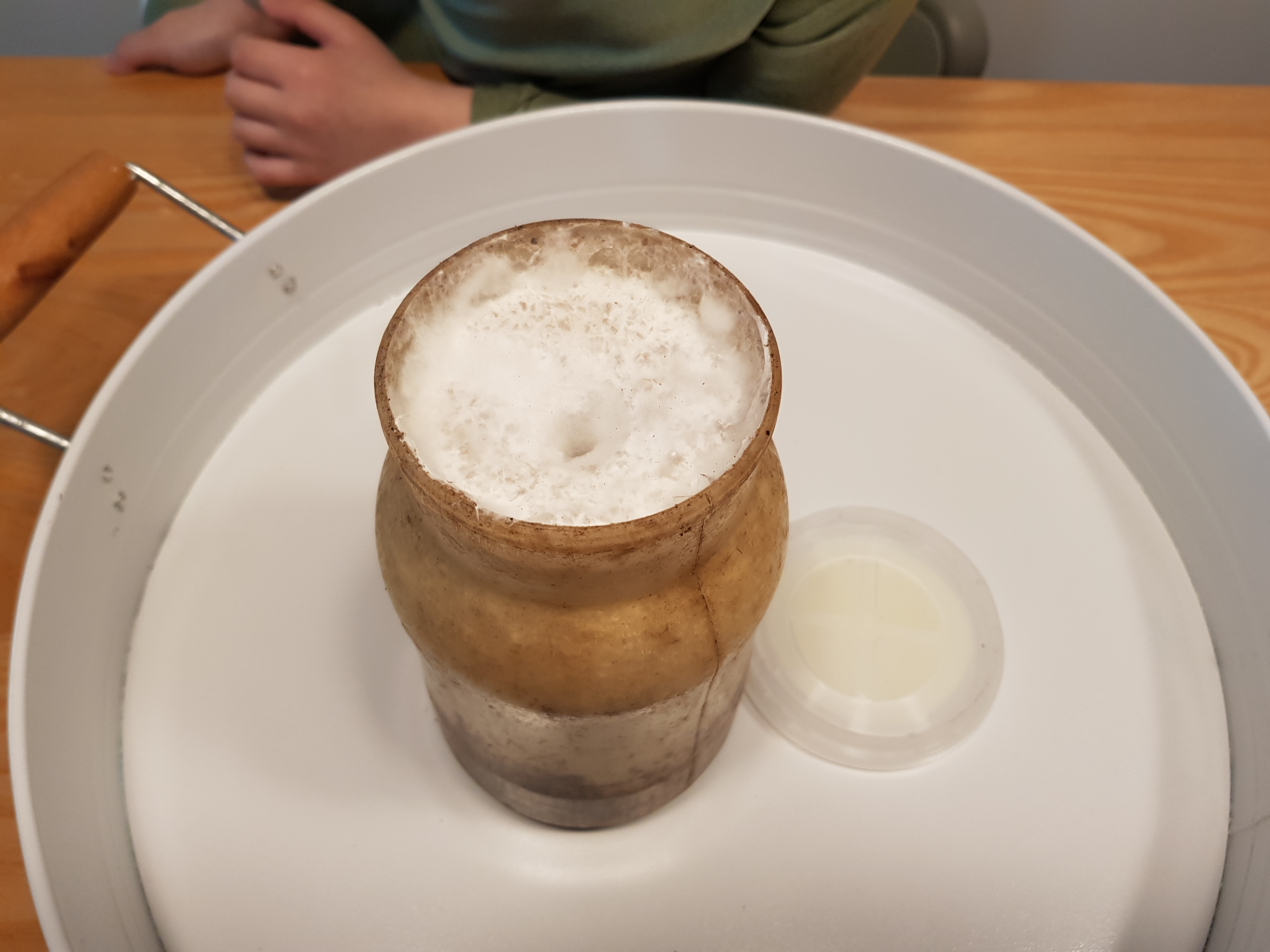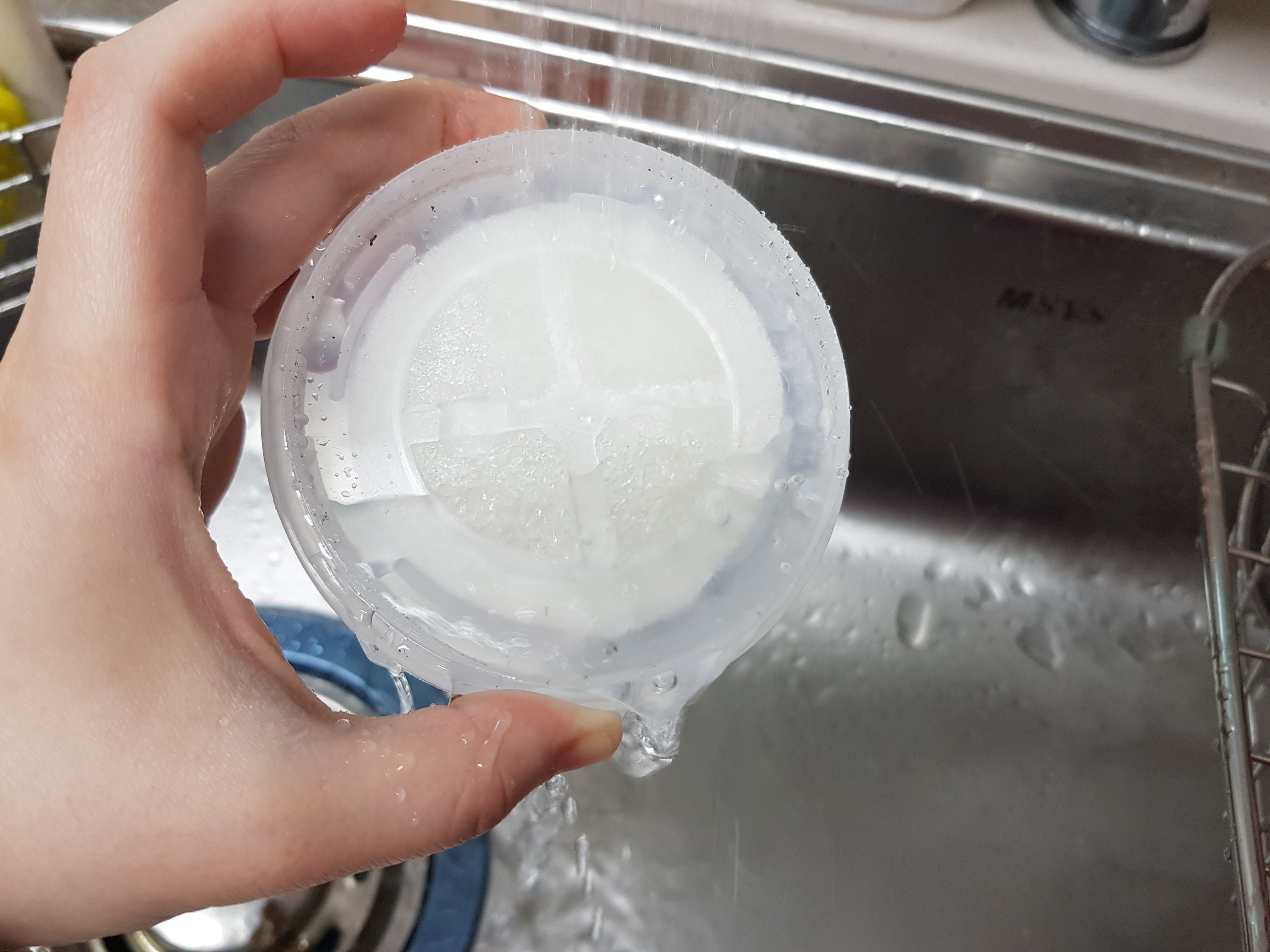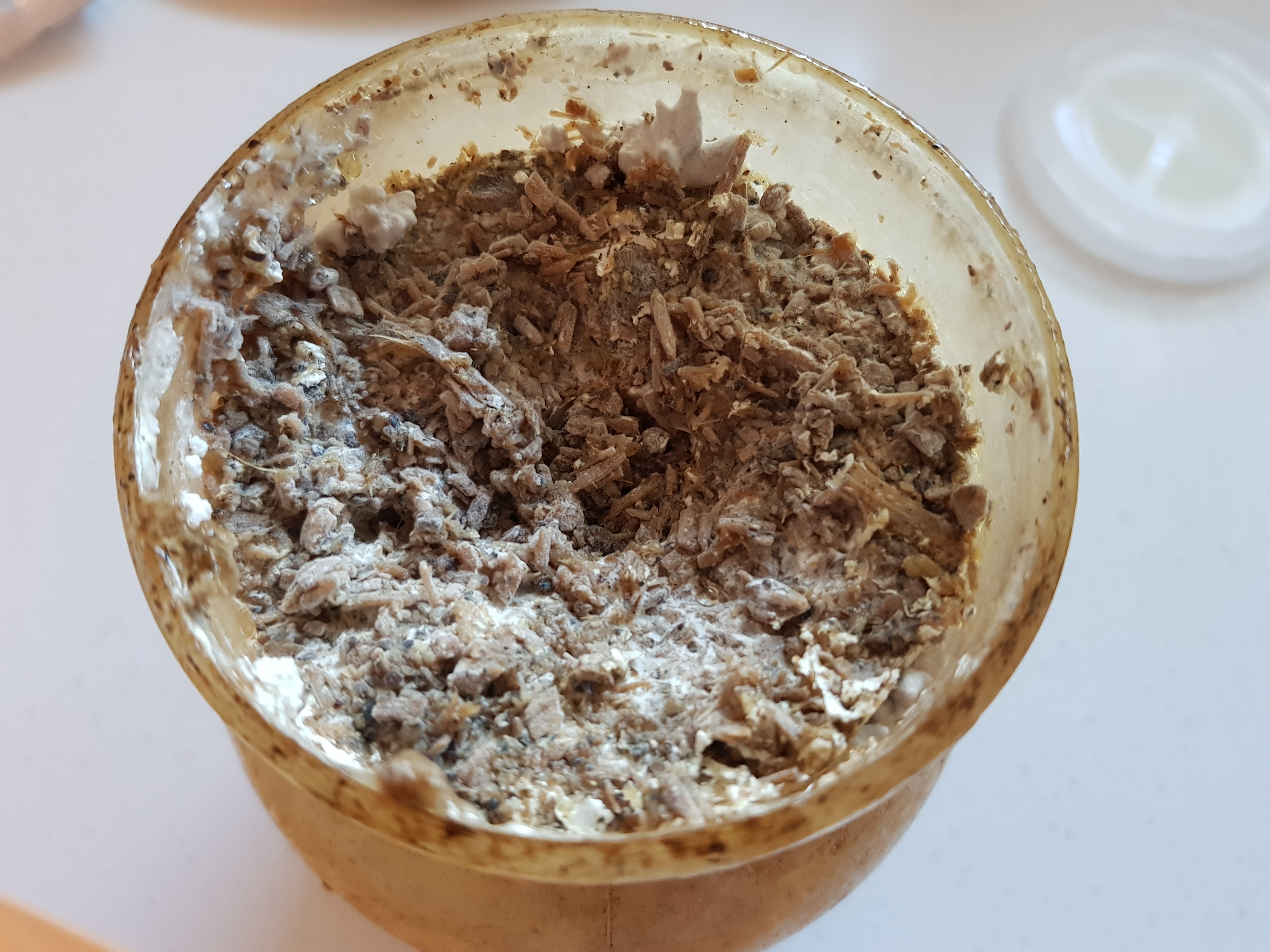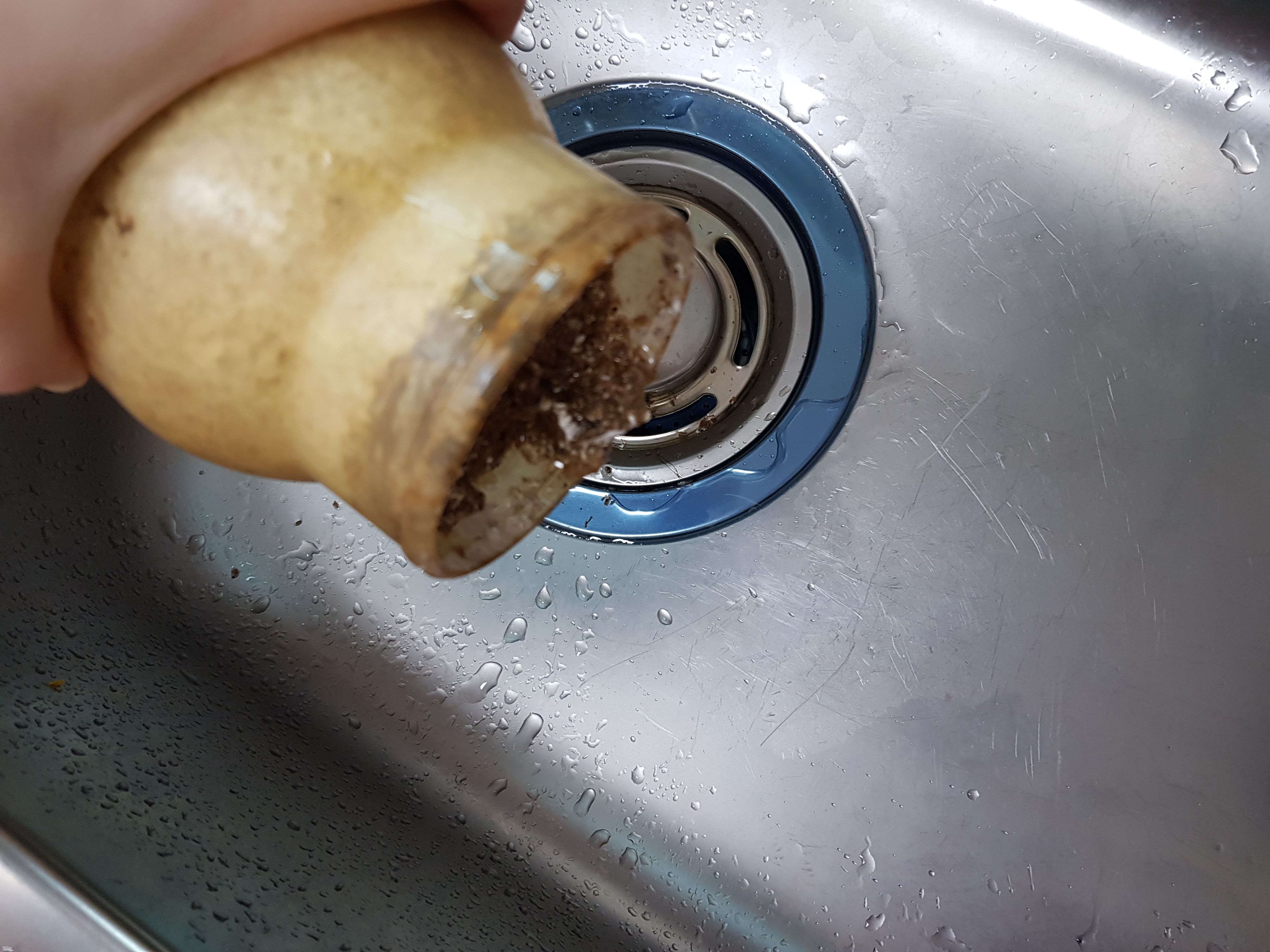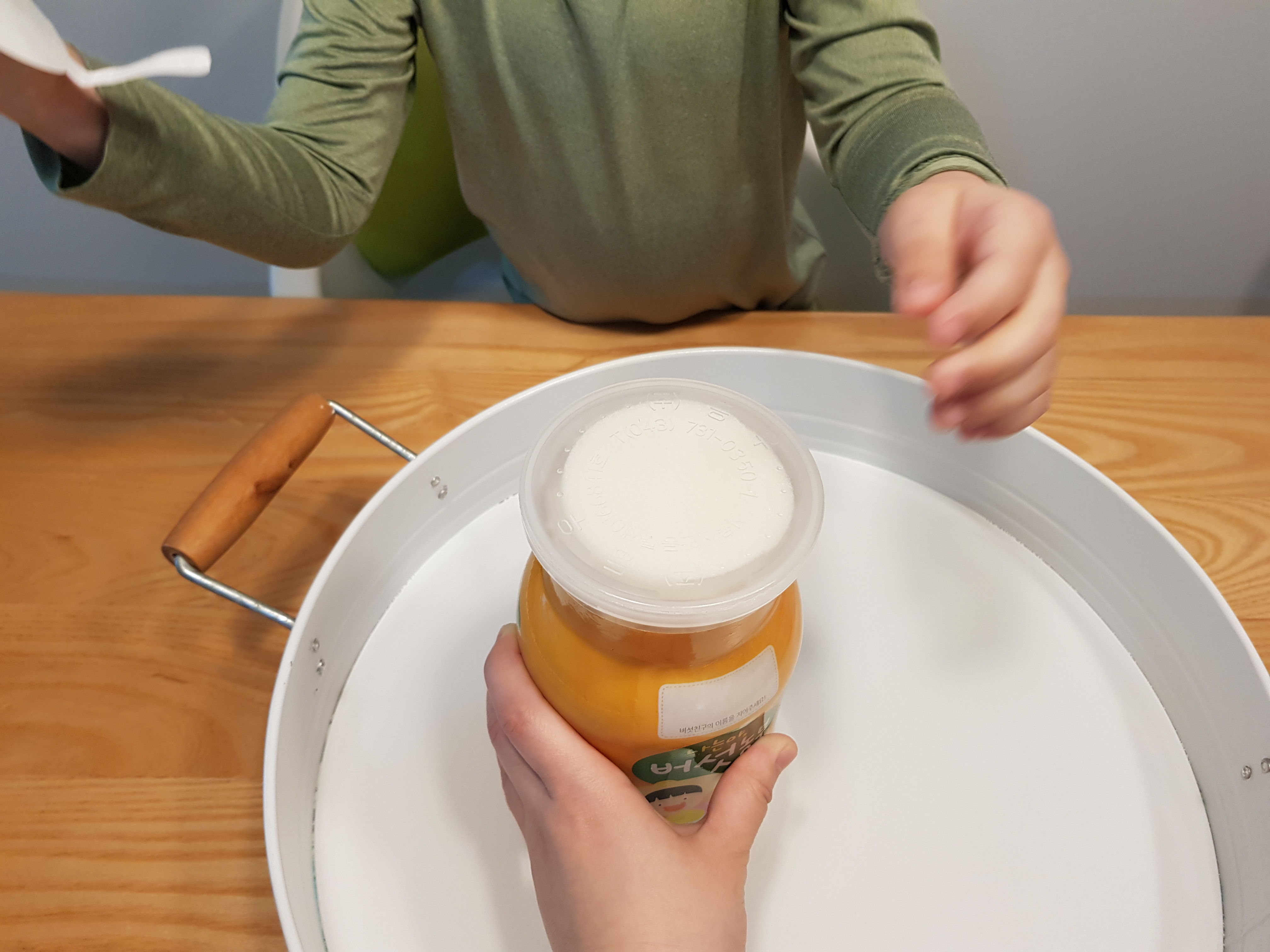 병뚜껑을 열고 하얀 노화균 포면을 숟가락으로 1cm정도 긁어주기