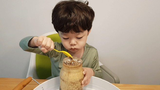 동글이는 소꿉놀이 할 때 쓰는 숟가락으로 살살 긁어내주었답니다.