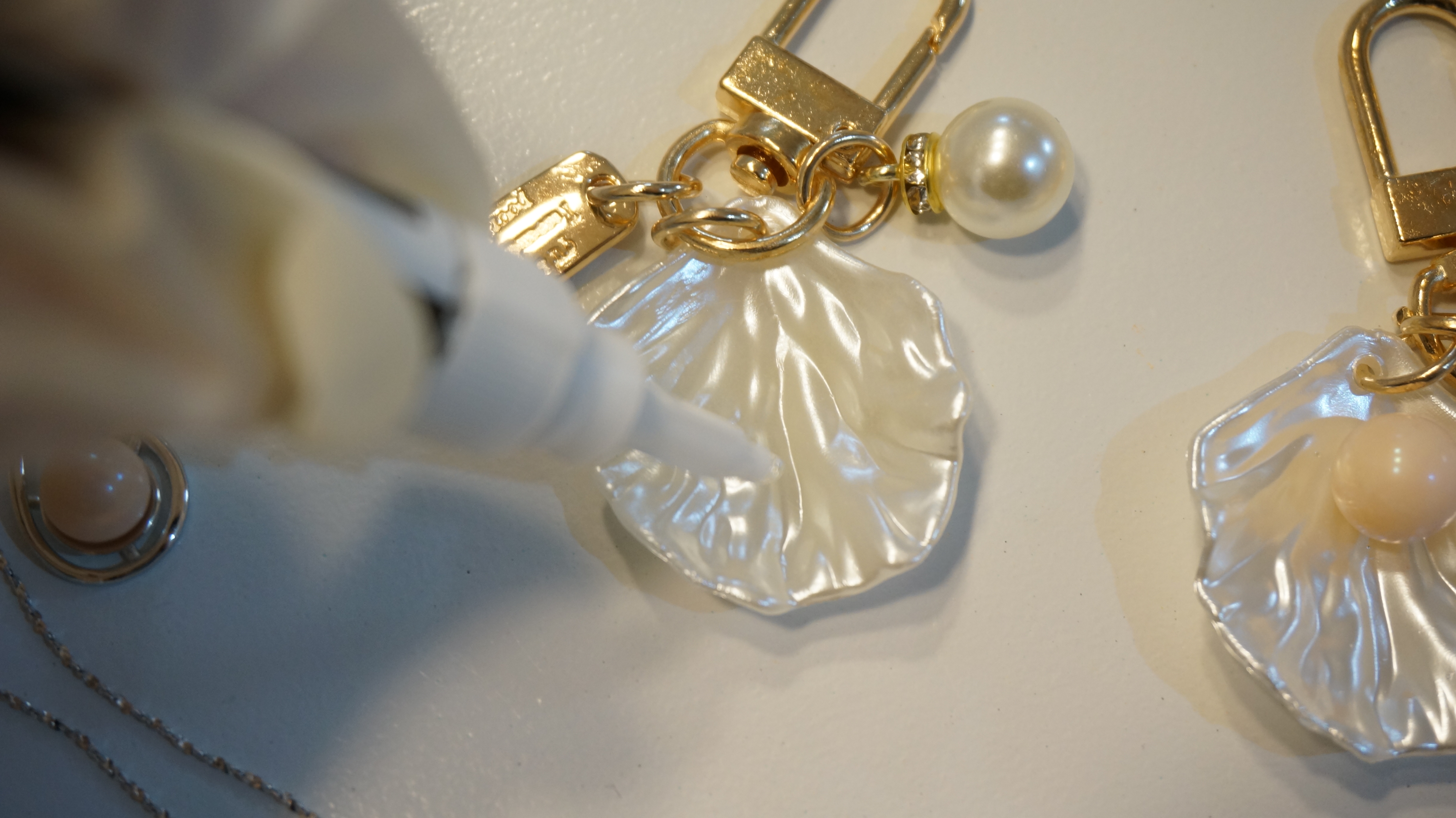 순간접착제를 이용해서 진주를 붙여 액세서리를 만들었는데요, 어울릴 진주를 고르는 재미도 쏠쏠하더라구요.