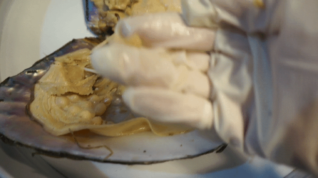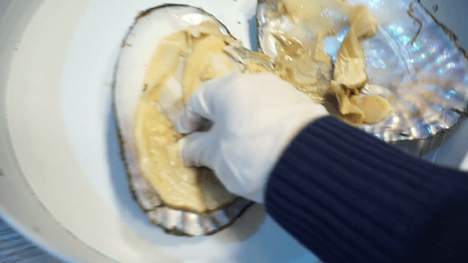 라텍스 장갑을 끼고 진주를 채취해주었어요.