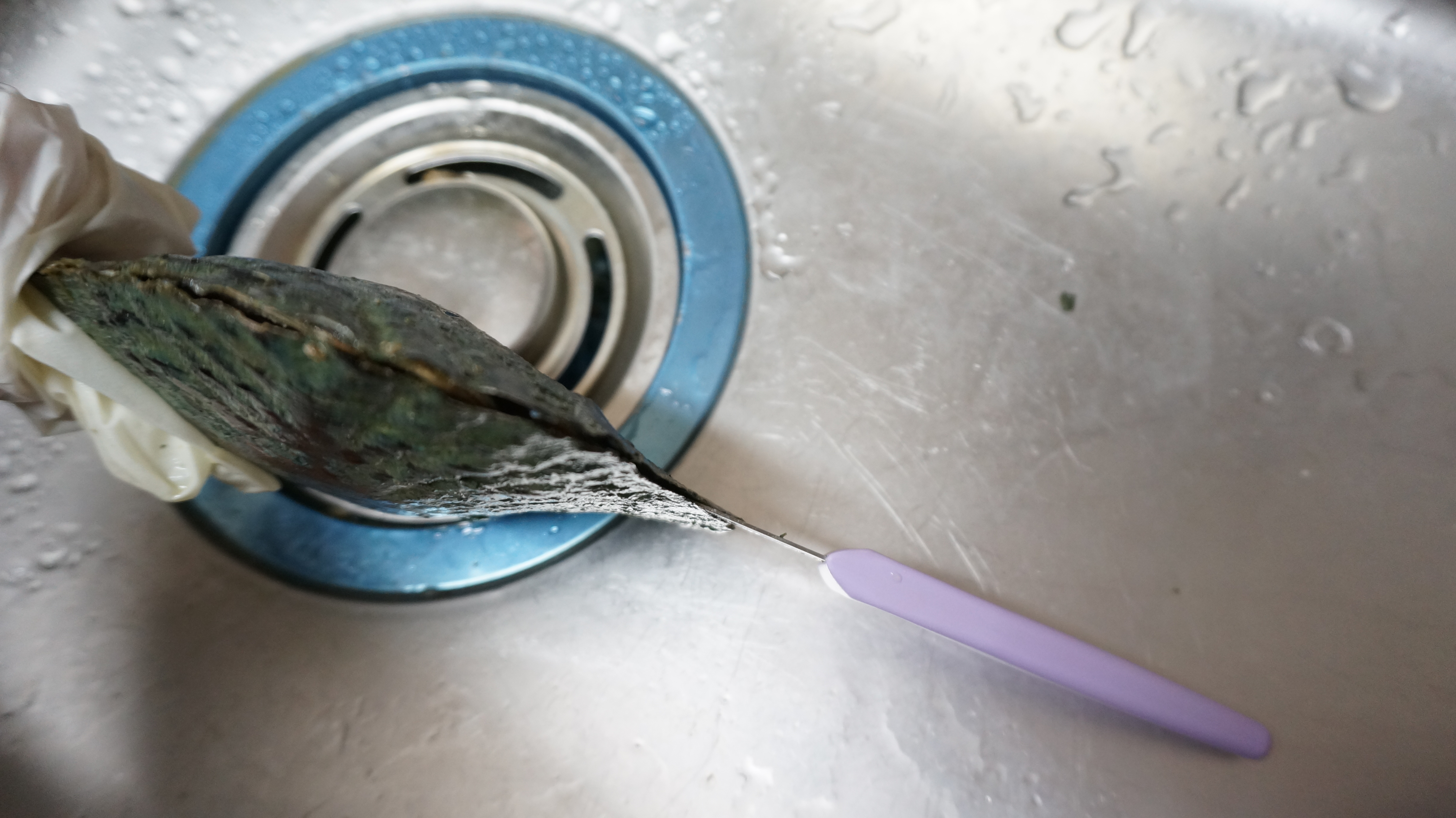 흐르는 물에 진주조개를 깨끗이 헹구어 줍니다.