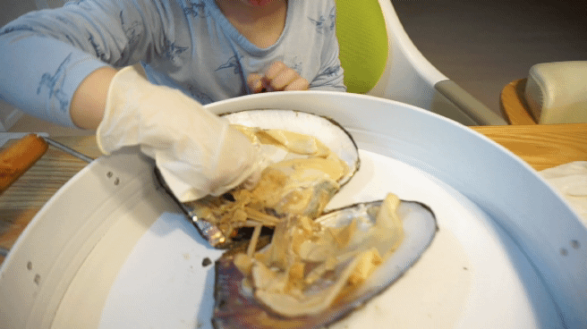 진주조개 만질때에는 꼭 라텍스 장갑 껴주세요.