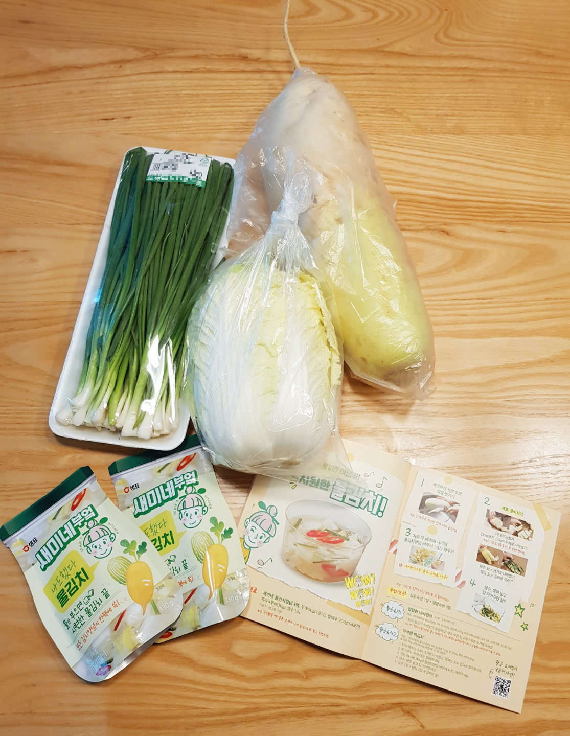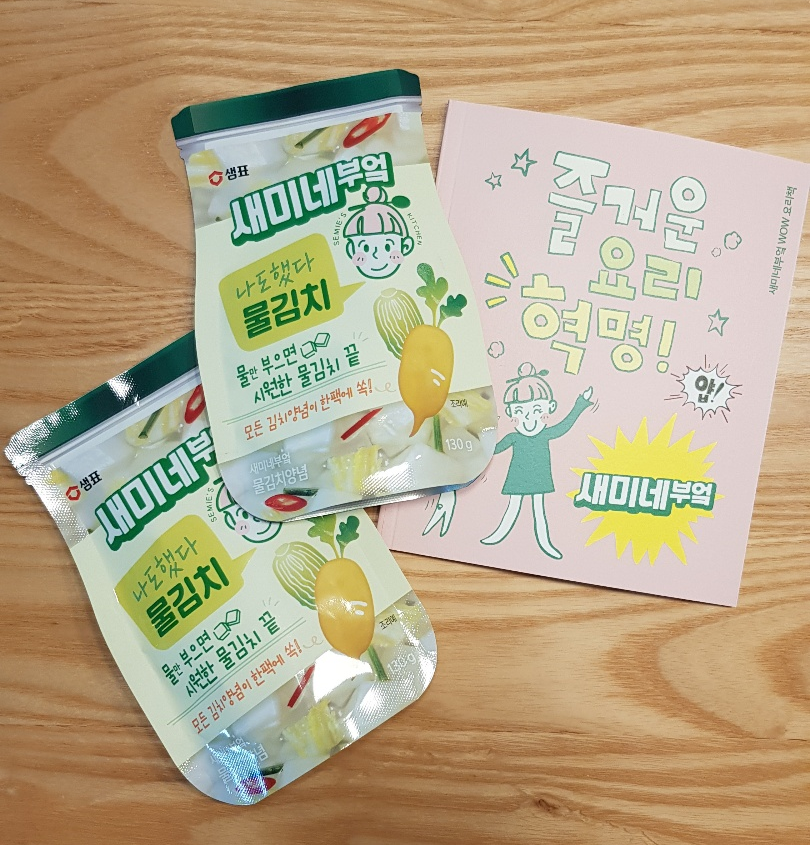인스타그램 이벤트에서 당첨되어 물김치 양념 두 팩을 제공 받았어요.