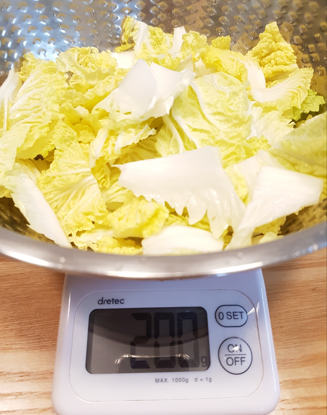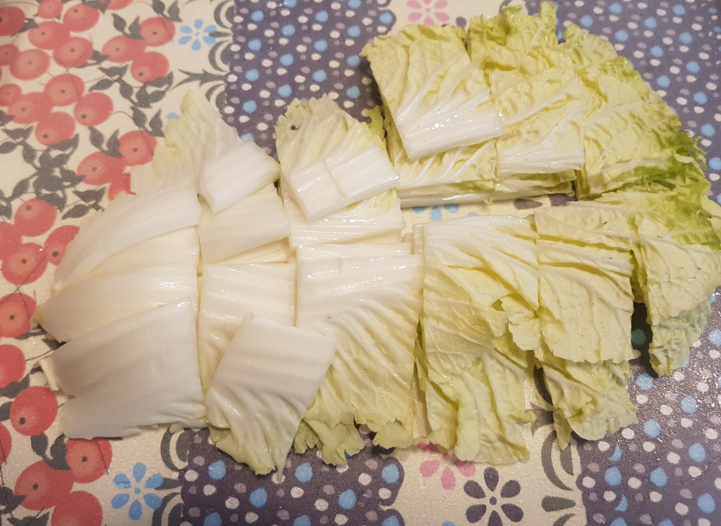 배추도 레시피에 크기가 나와있지만 눈대중으로 대충 썰고