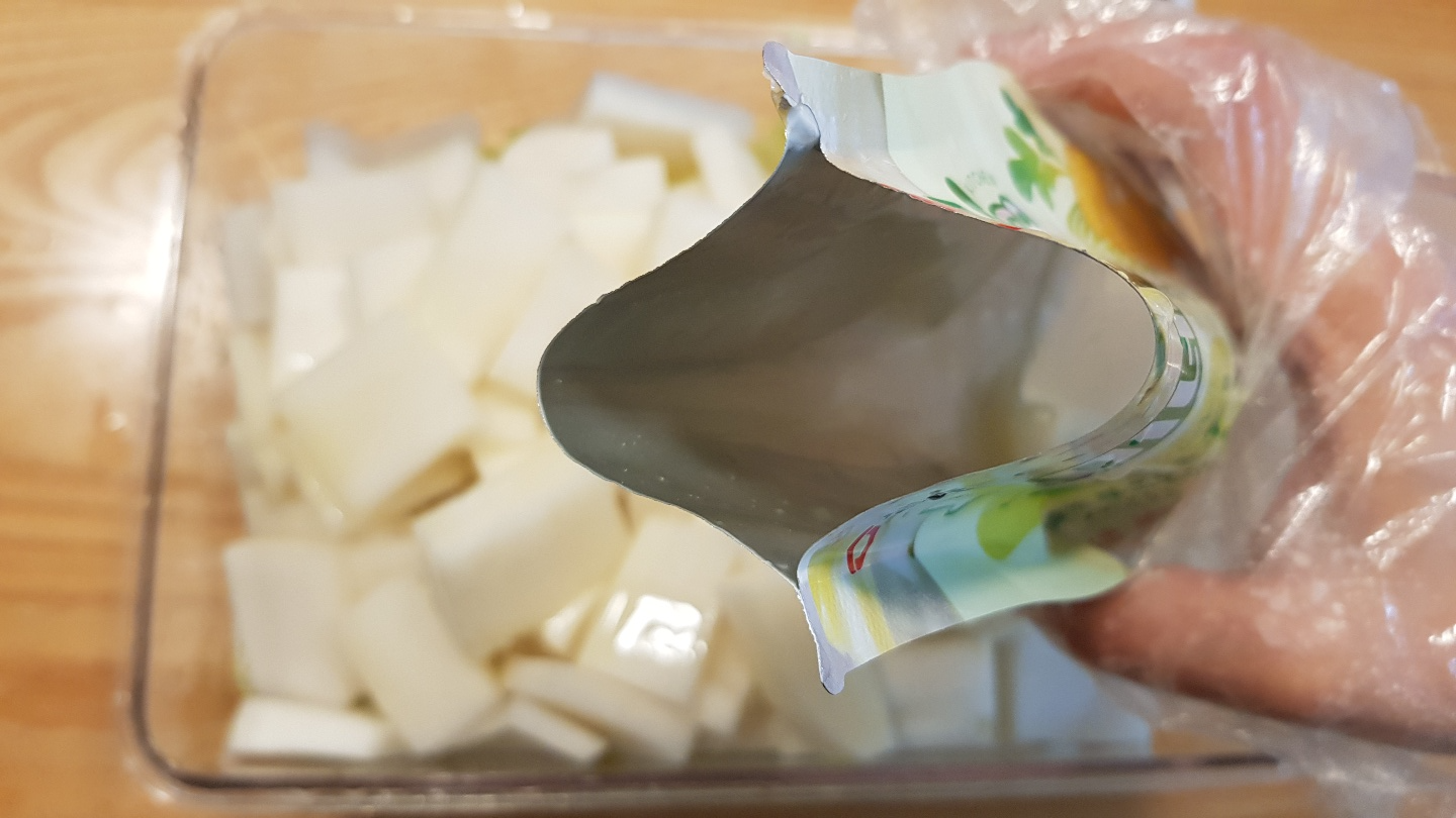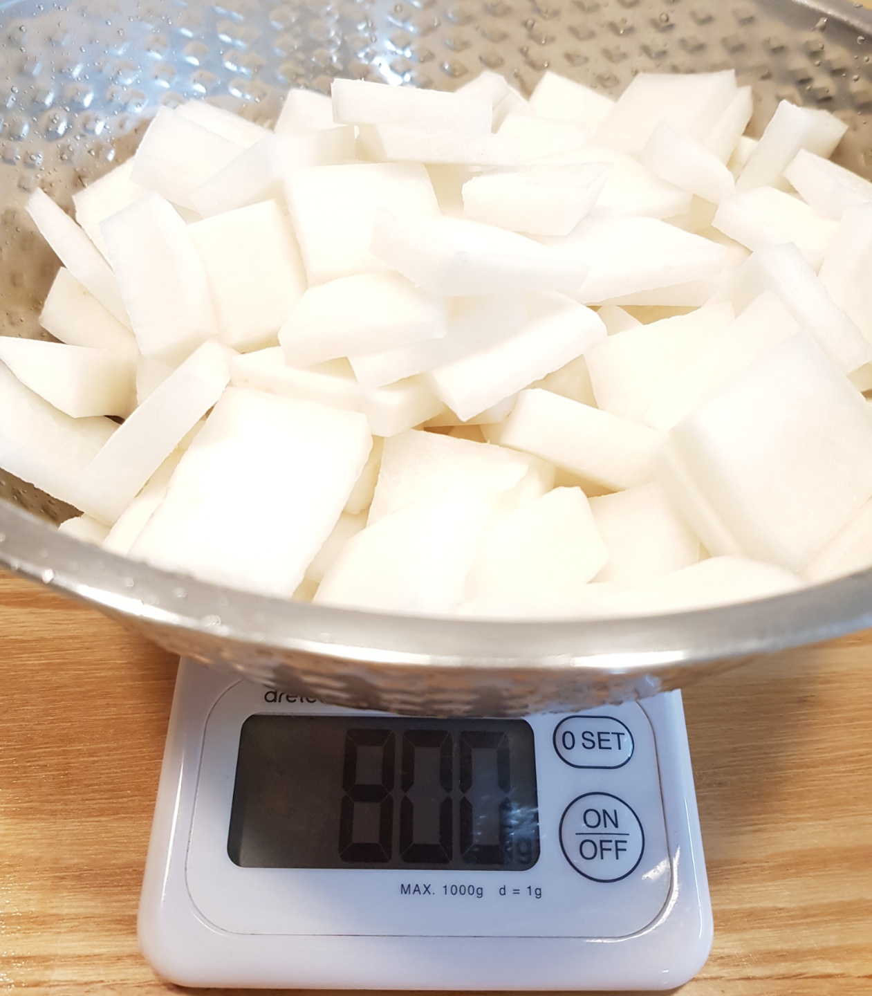 무 크기는 대충 이어도 그람수는 맞췄어요.