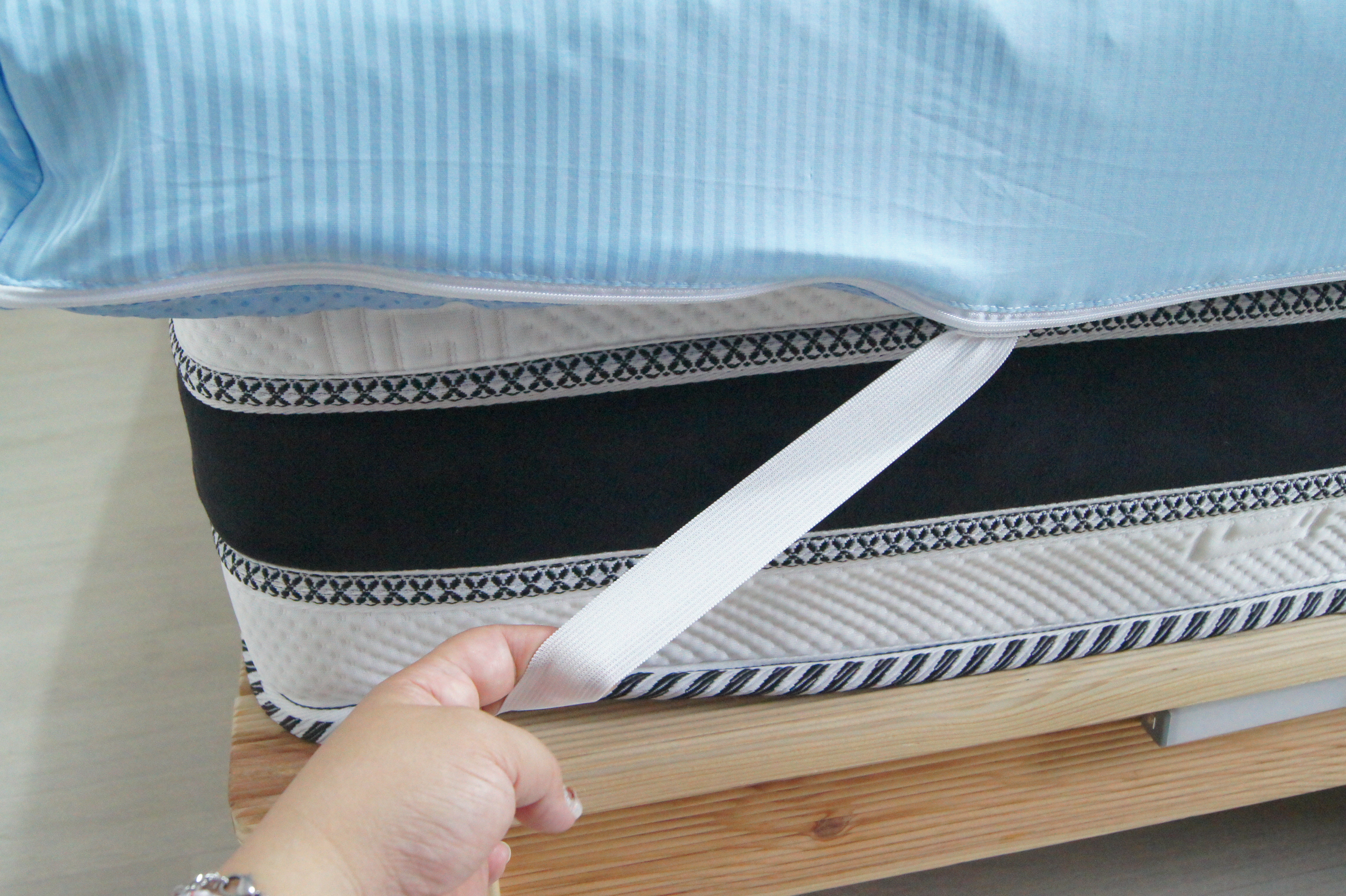 방수커버에만 밴드가 있는게 아니고 누잠 토퍼 에도 밴딩이 되어있어요.