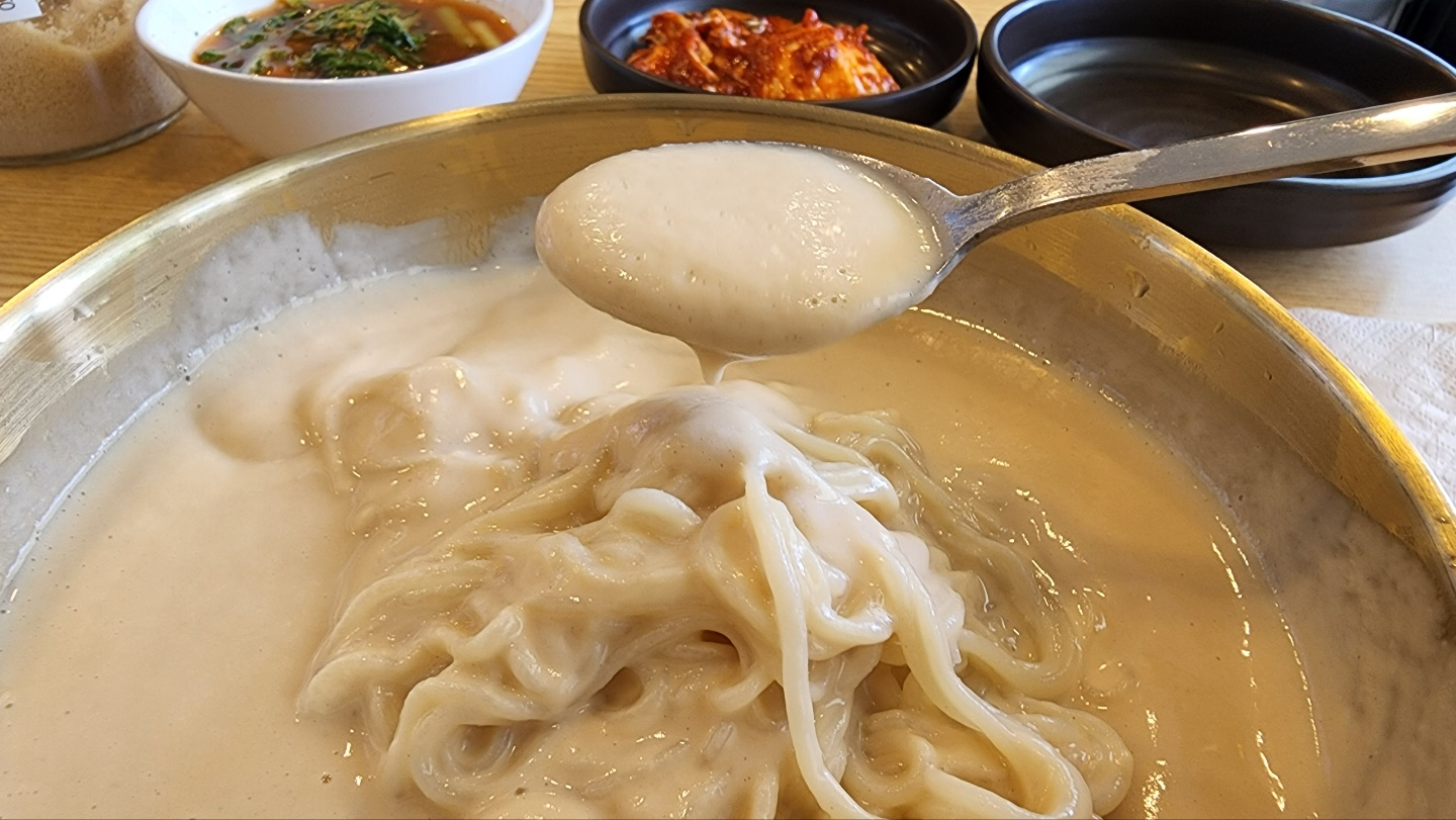 영월에서 나고자란 콩으로 만든 콩국물이 얼마나 찐하고 맛있게요.