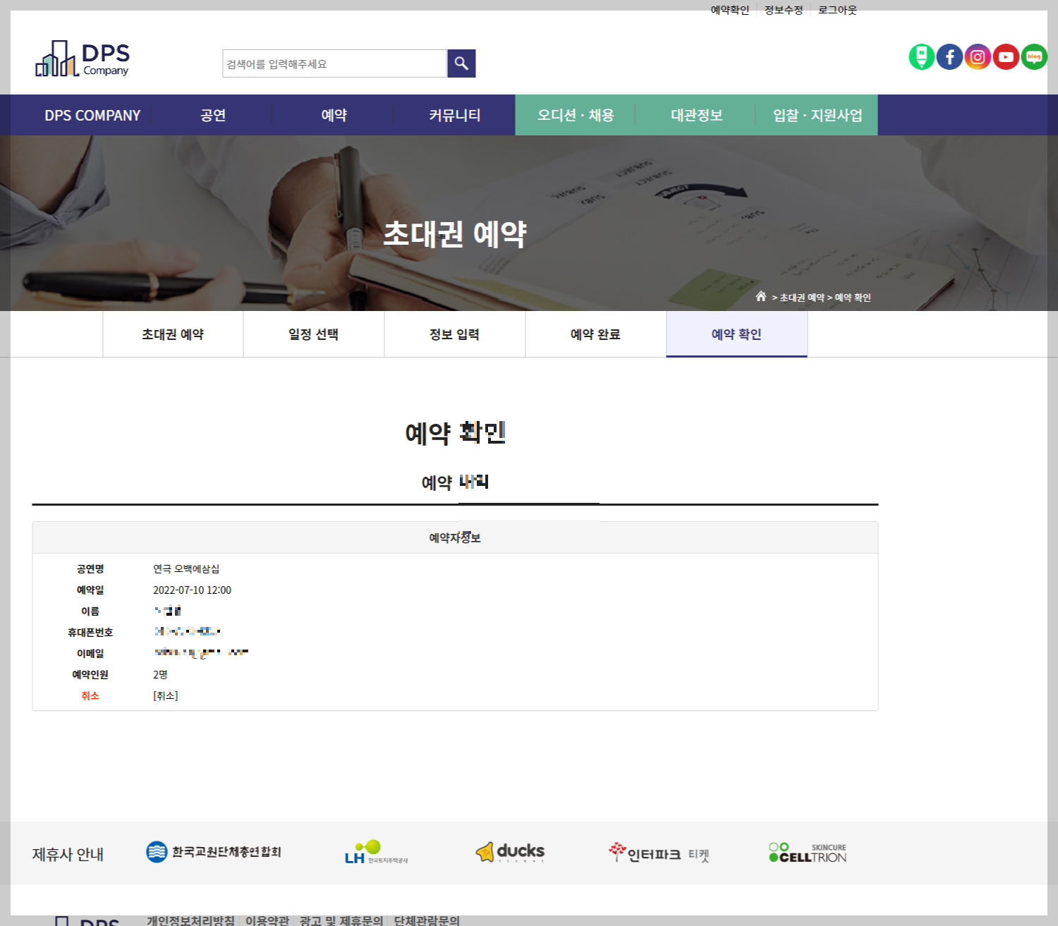 DPS컴퍼니 초대권 예약사이트에서 예약을 진행했답니다.