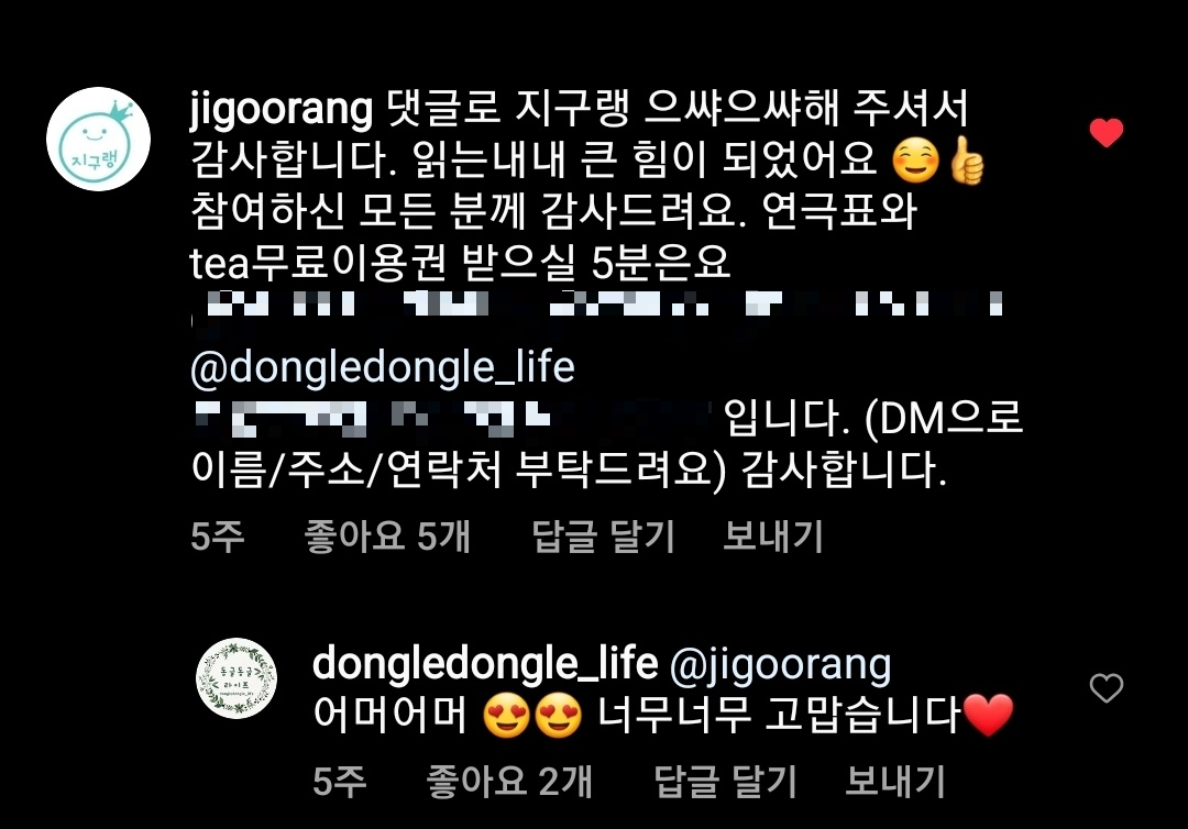 그런데!! 지구랭 인스타그램 계정 에서 깜짝 이벤트에 두둥!! 당첨!!