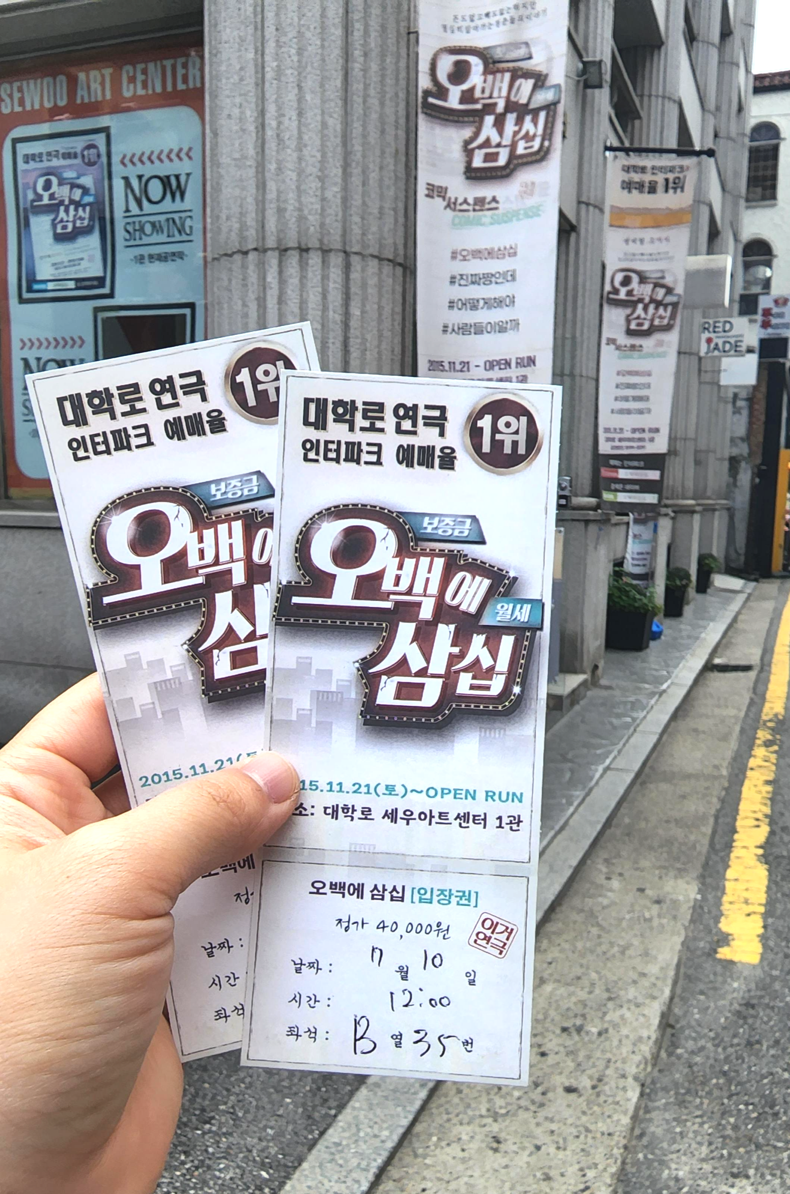대학로에서 오백에삼십을 관람하시려면 여러 방법이 있지만 인터파크 등 예매 사이트를 이용하실 수도 있고,