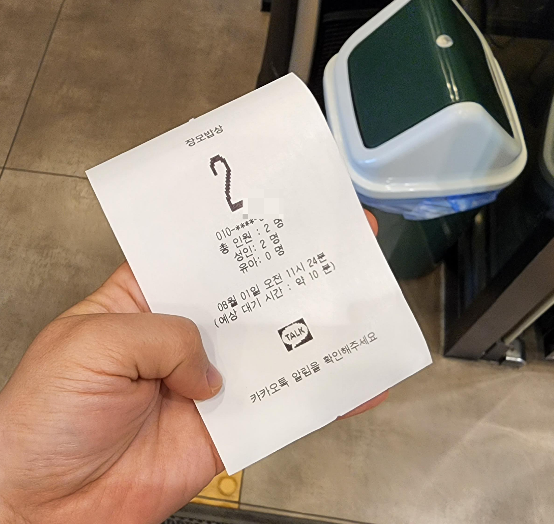 웨이팅이 없을 땐 바로 입장 가능한데요, 사람들이 많은 경우 대기표를 발권해야해요.