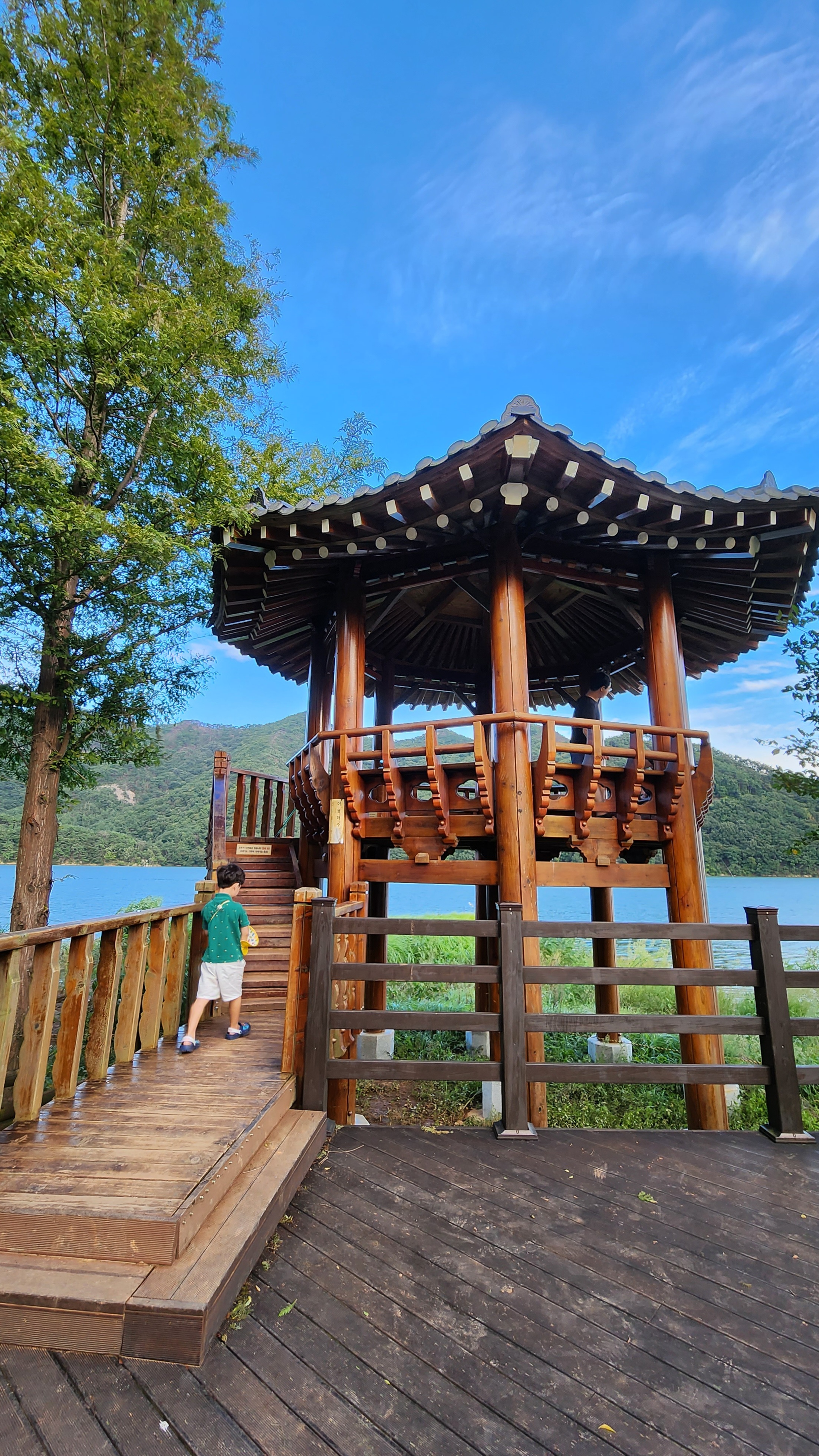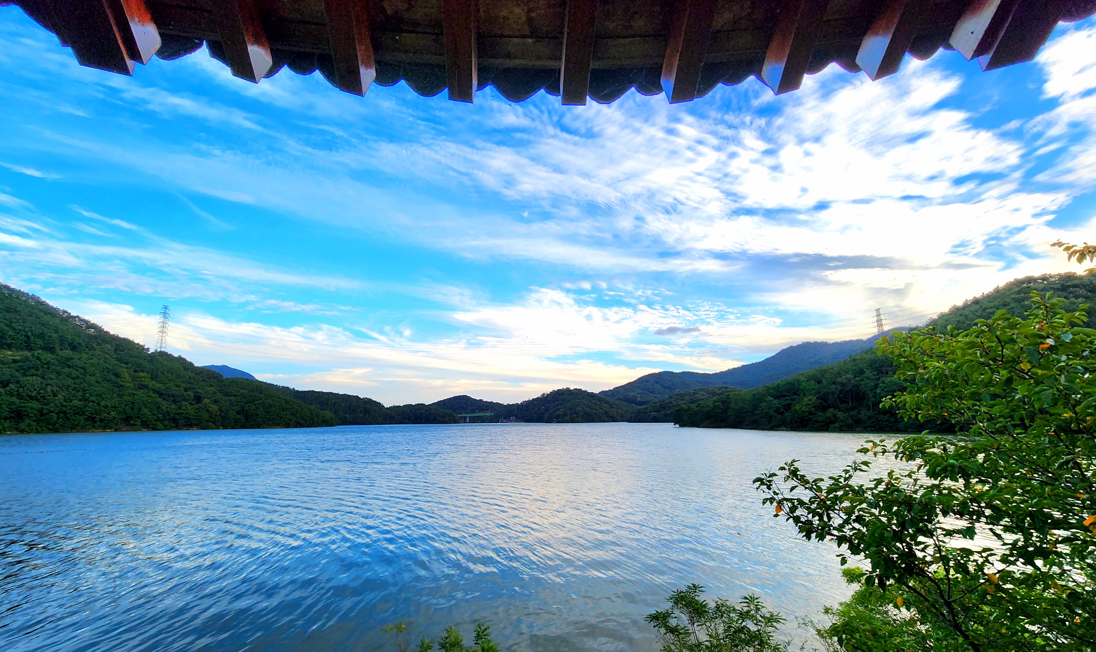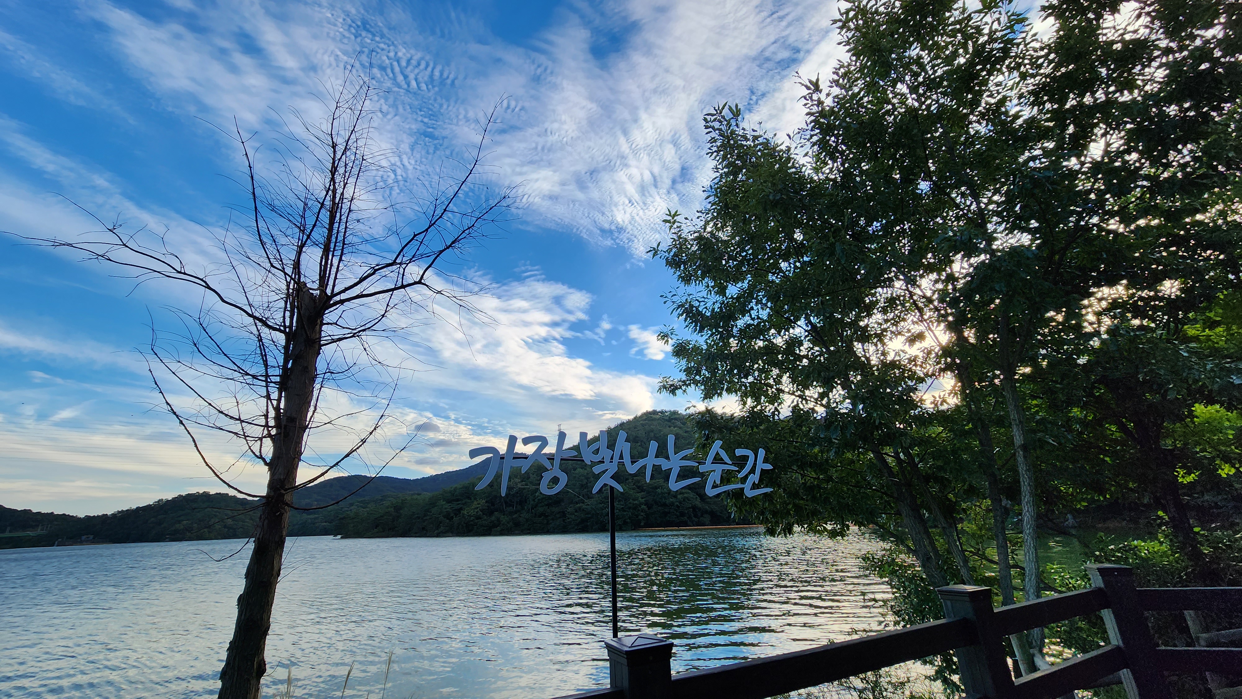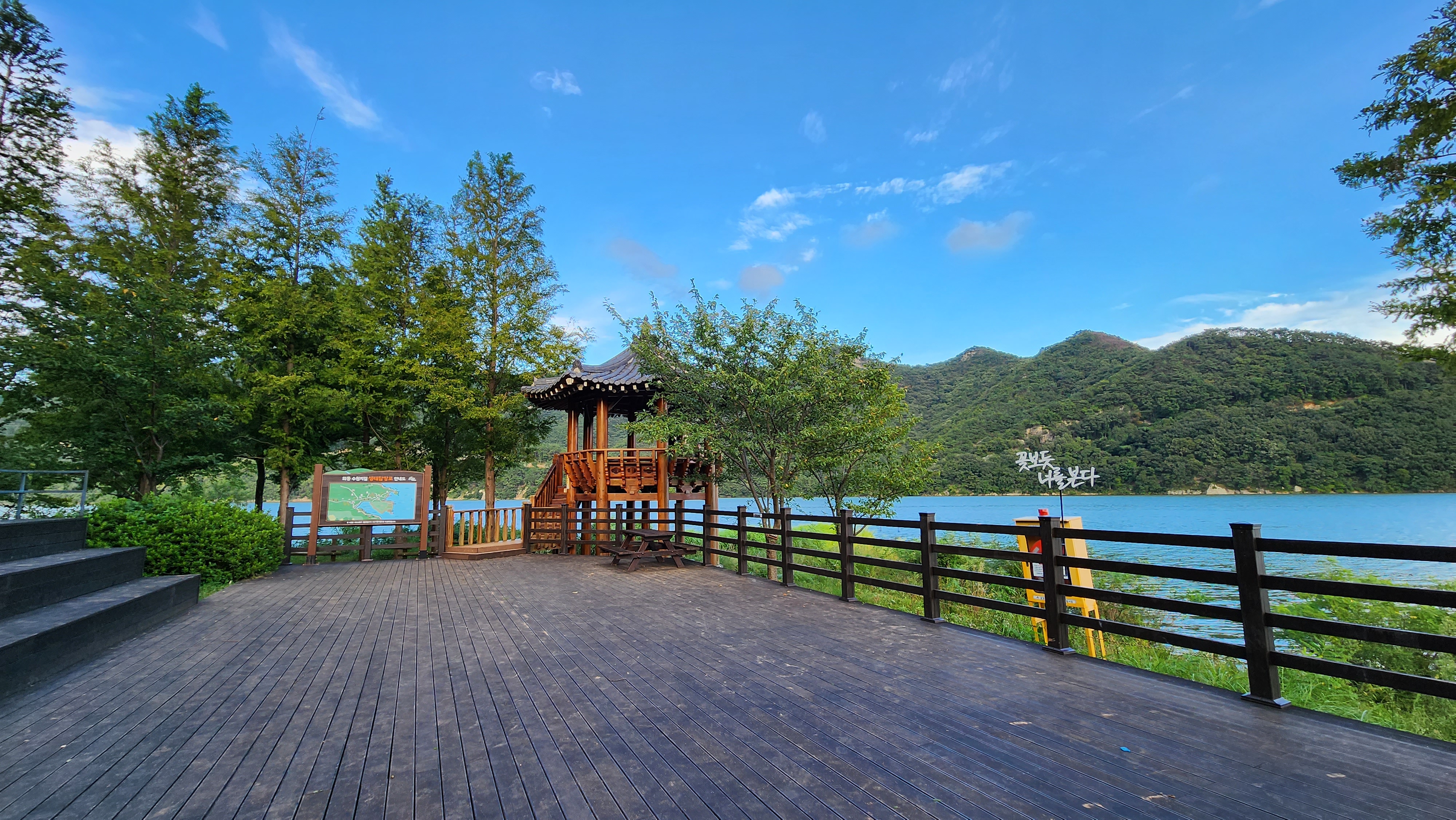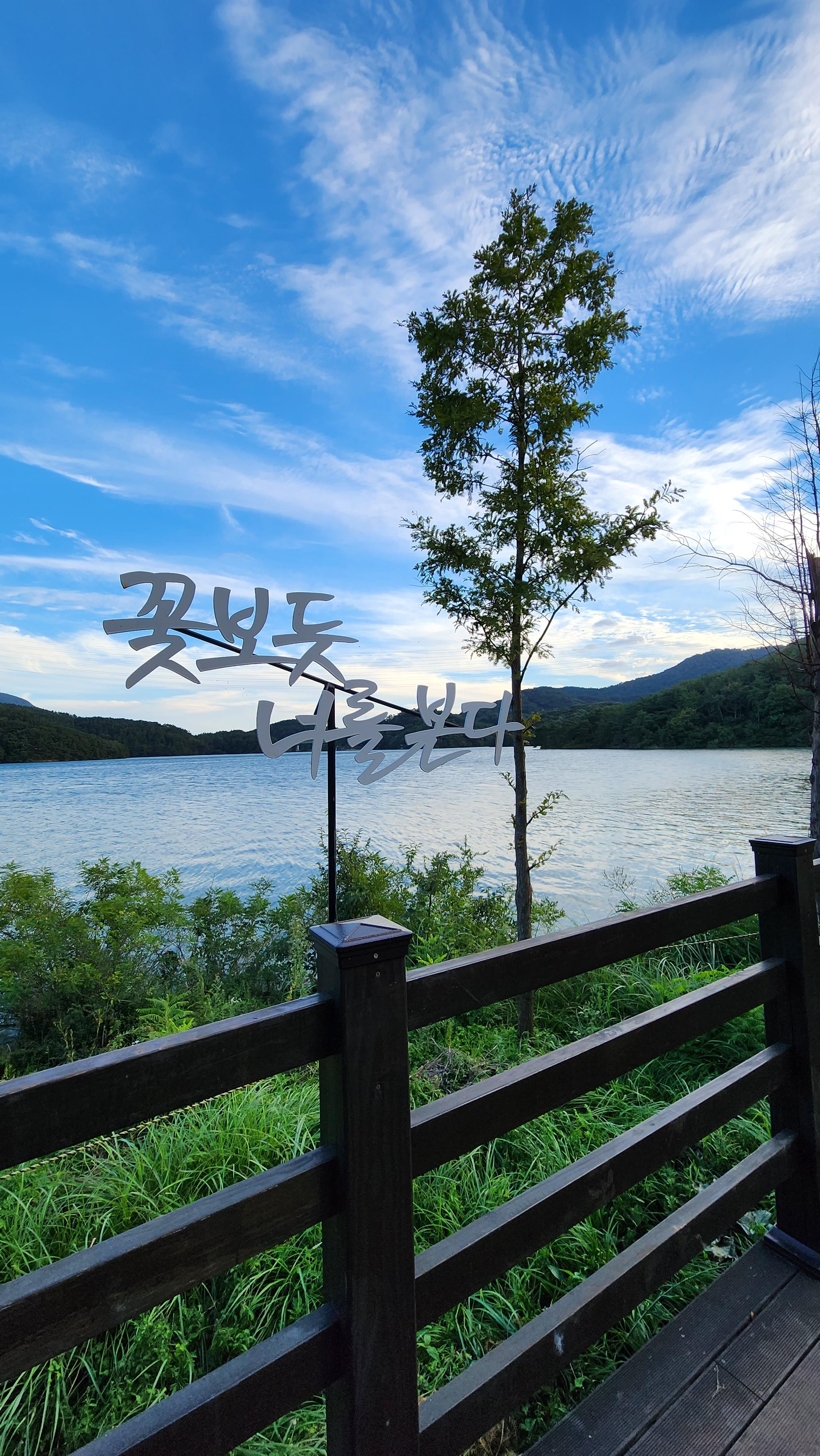 하늘도 아름답고 수원지에서 바라보는 풍경이 참 멋졌어요.