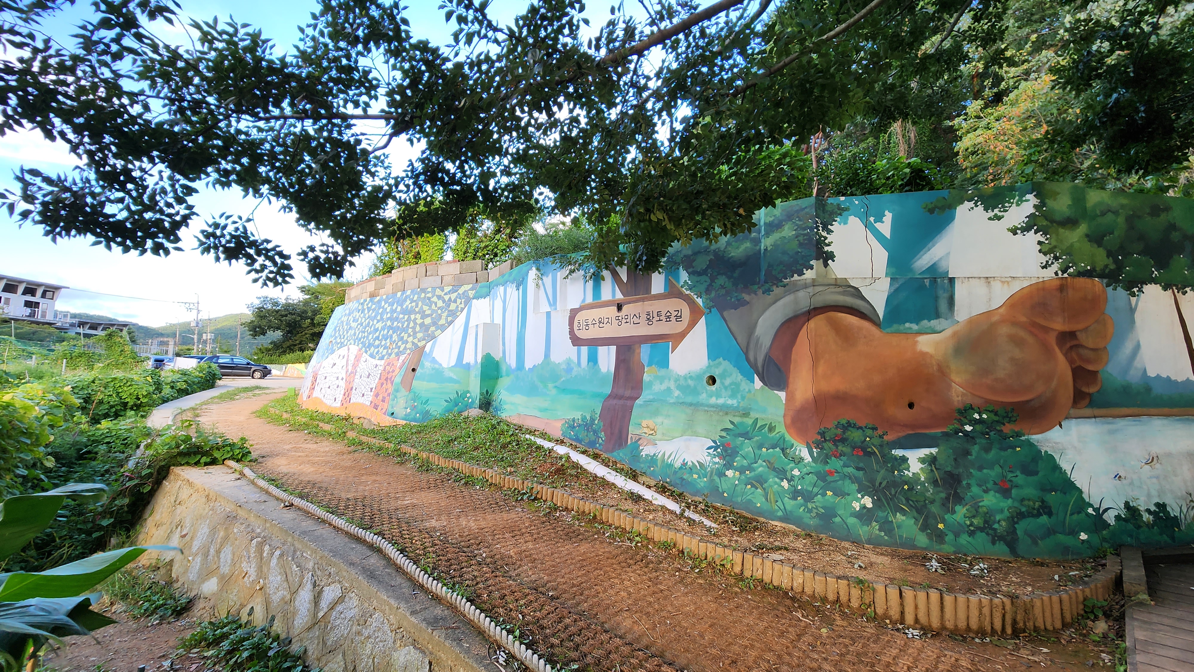 벽화에 커다란 발이 그려져 있어서 깜짝 놀라긴 했는데요,