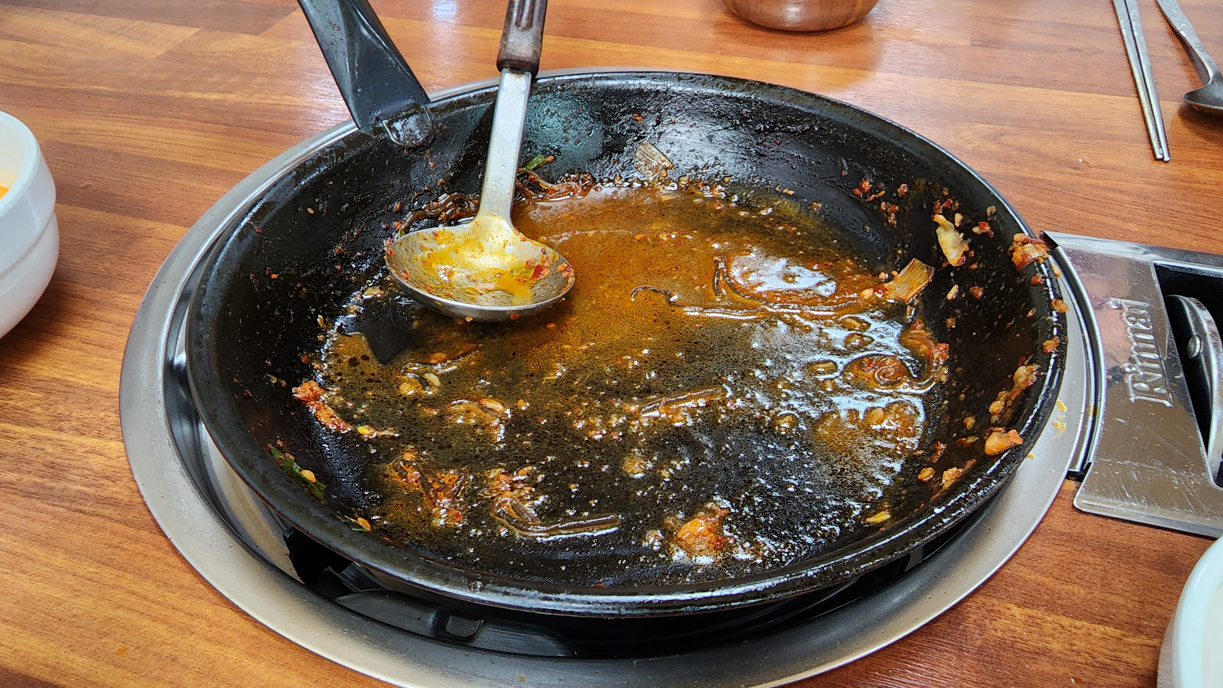 낙곱새는 요런 까만 냄비에 가져와 주시더군요.