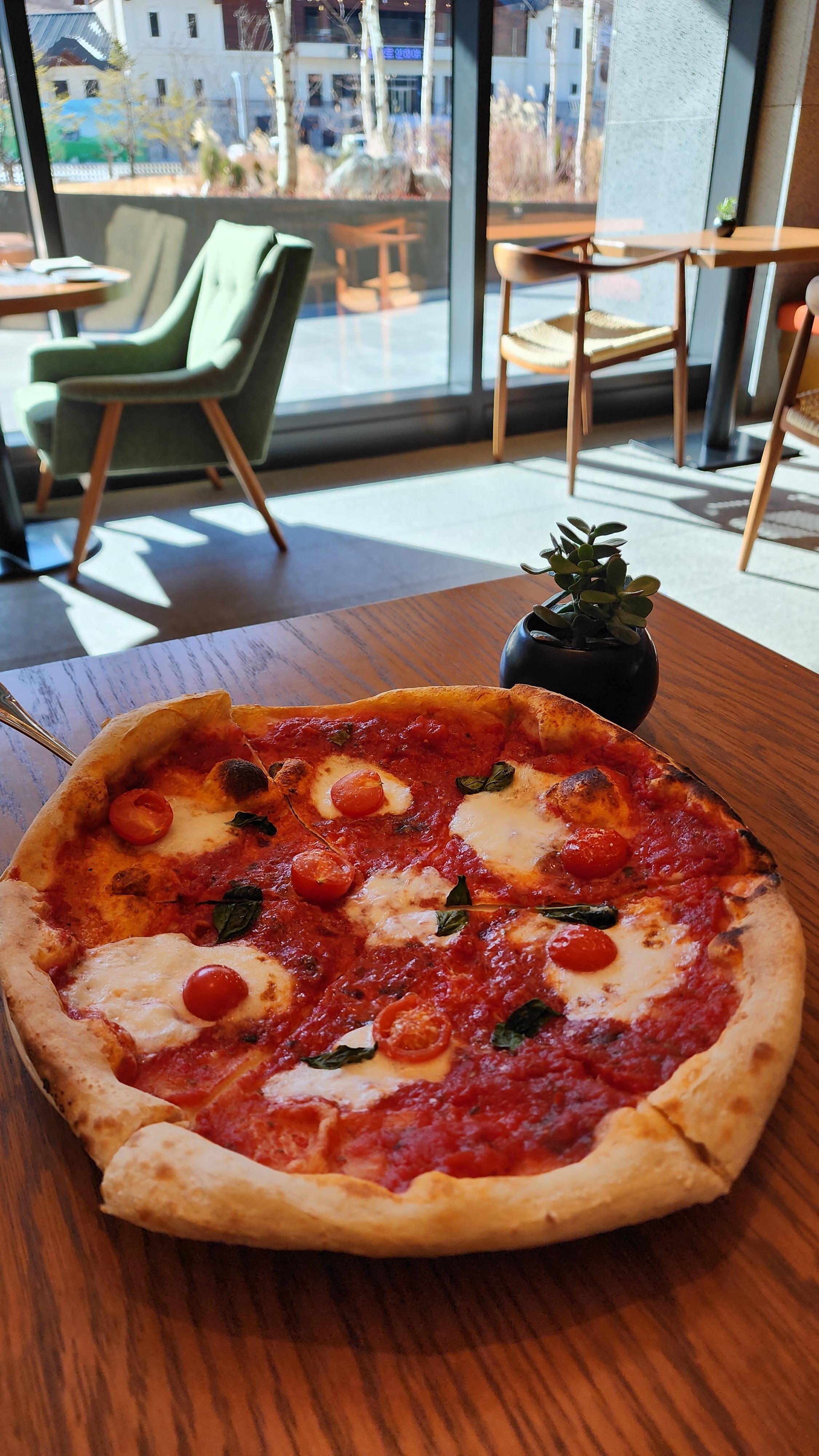 화덕에서 구워져 나와 풍미가 좋았고, 아주 건강한 맛이 나는 피자였어요.