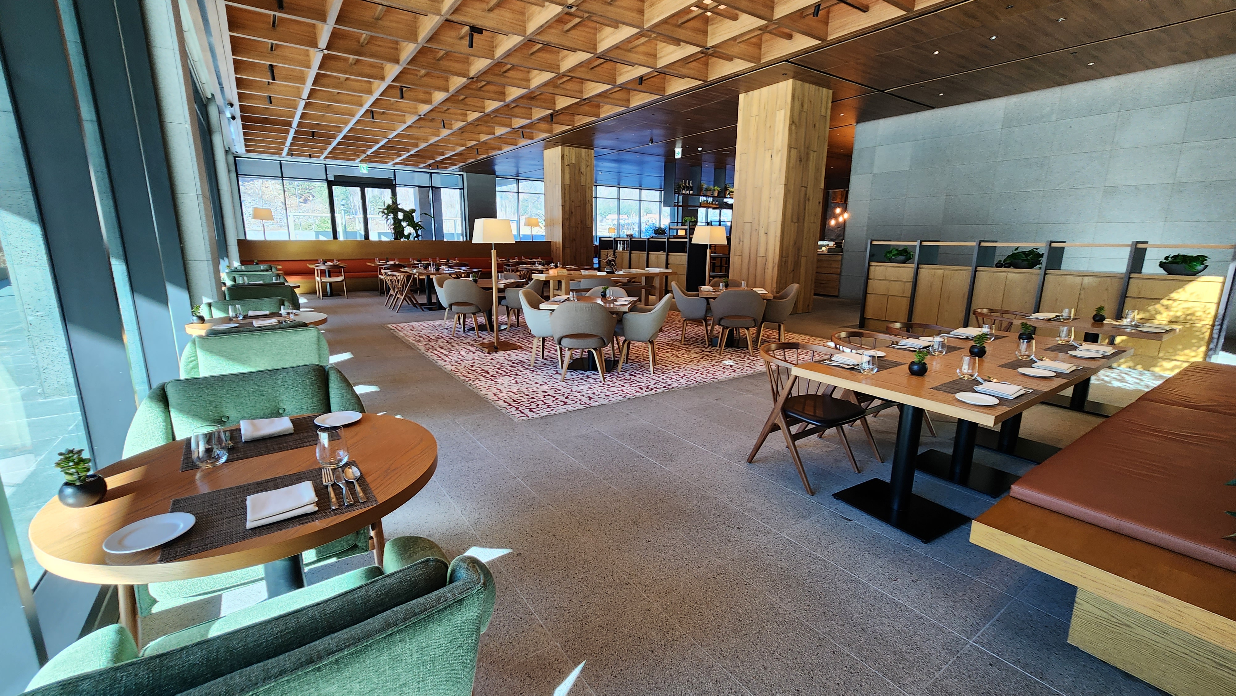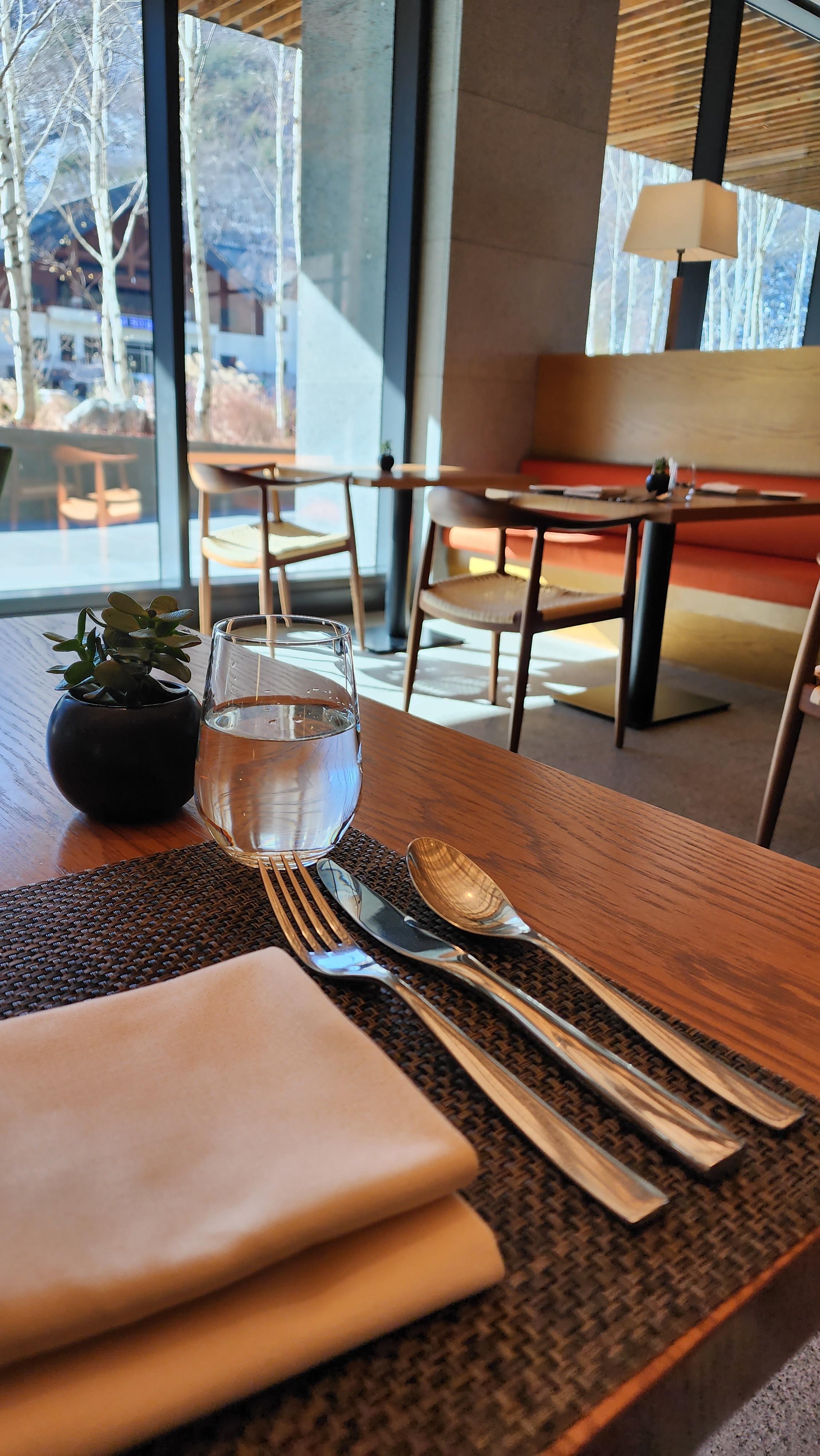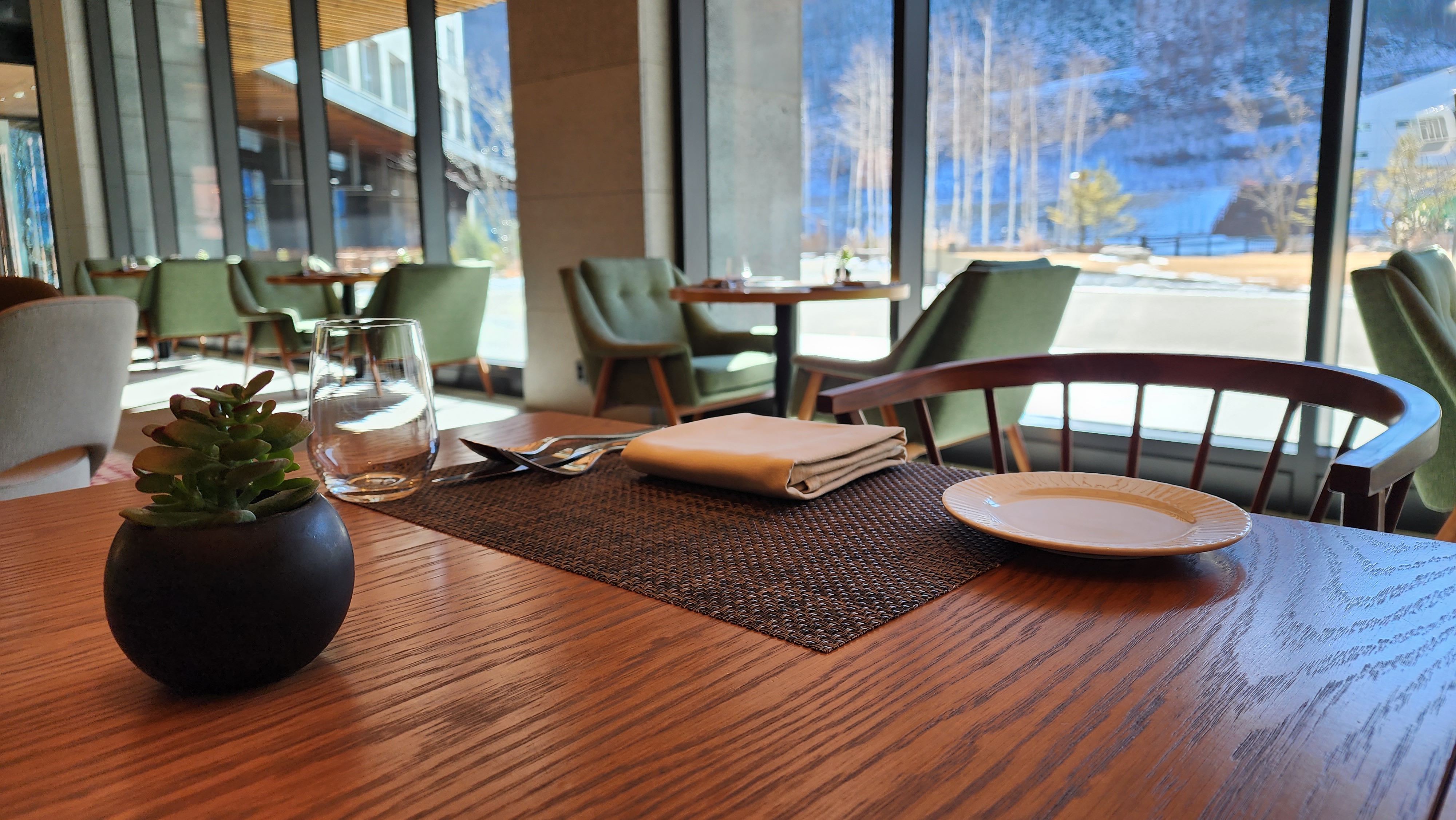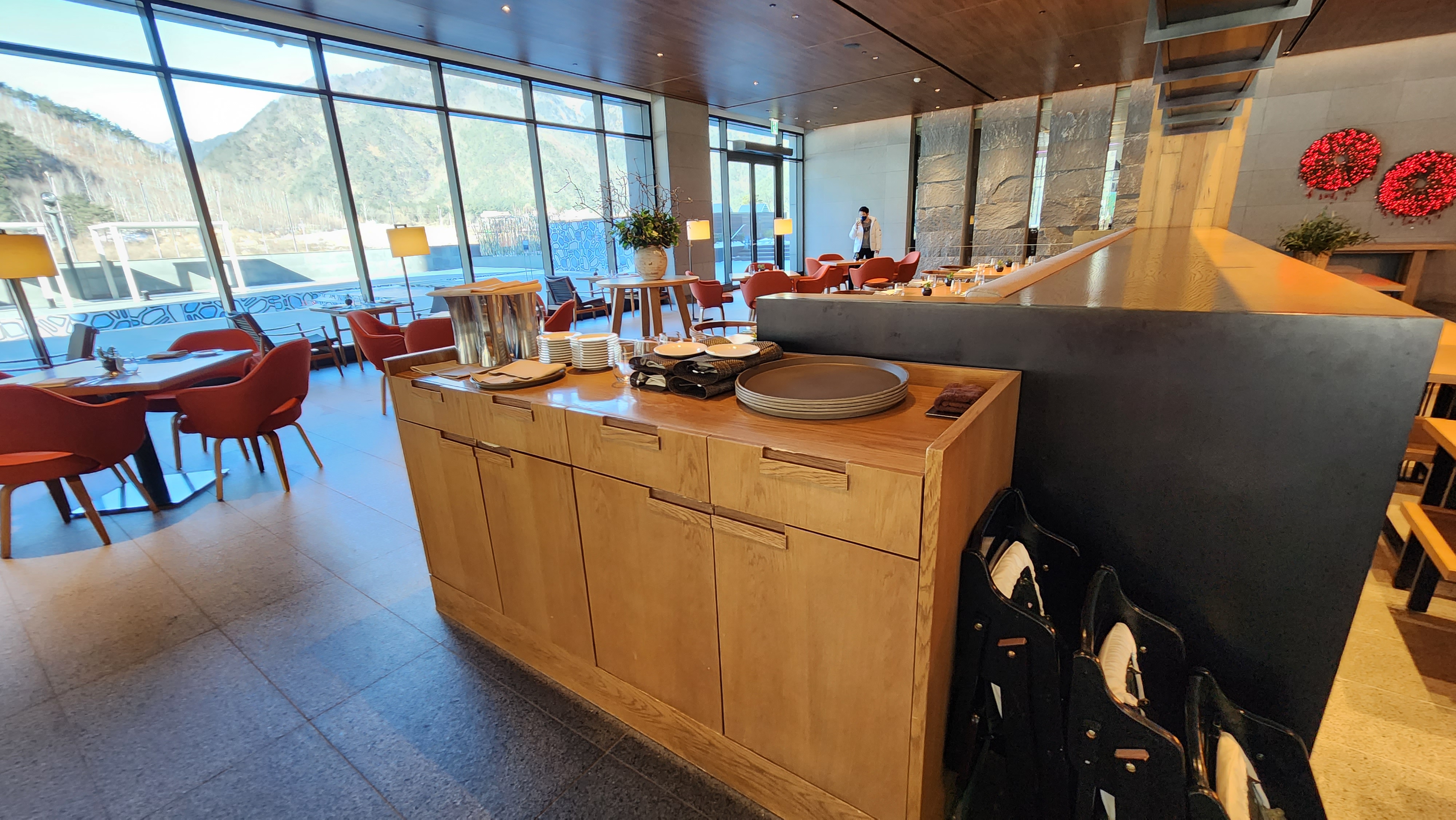 통창이라 채광이 정말 잘 되고 가리왕산 케이블카 타는 곳도 보이고, 자작나무도 멋져서 한없이 구경할만 하지만, 공간이 워낙 넓고 강원도 기온이 낮은편이라 저는 식사하면서 조금 추웠어요.