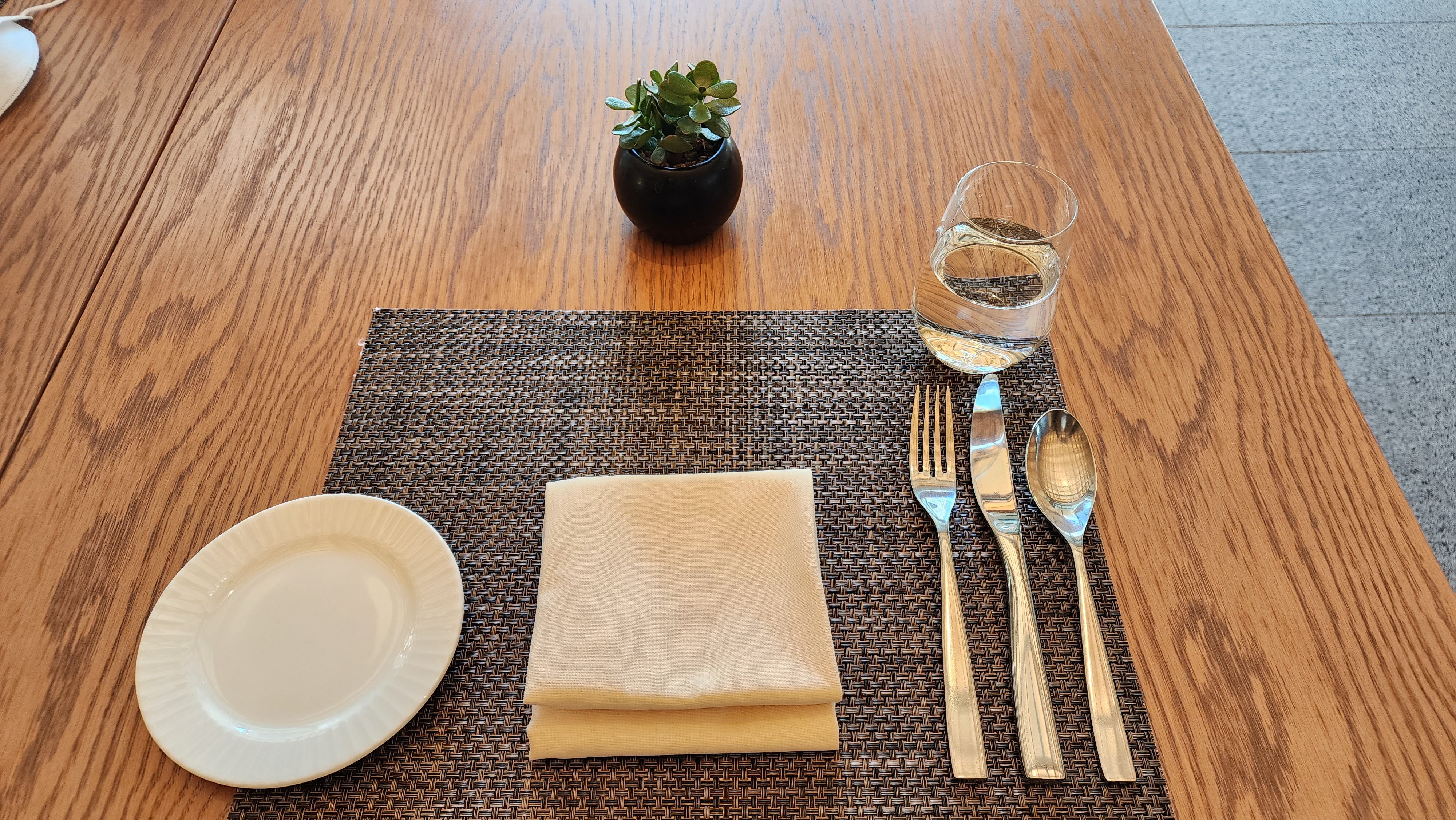 테이블에 앞접시, 커트러리, 냅킨 등을 셋팅해주셨어요.