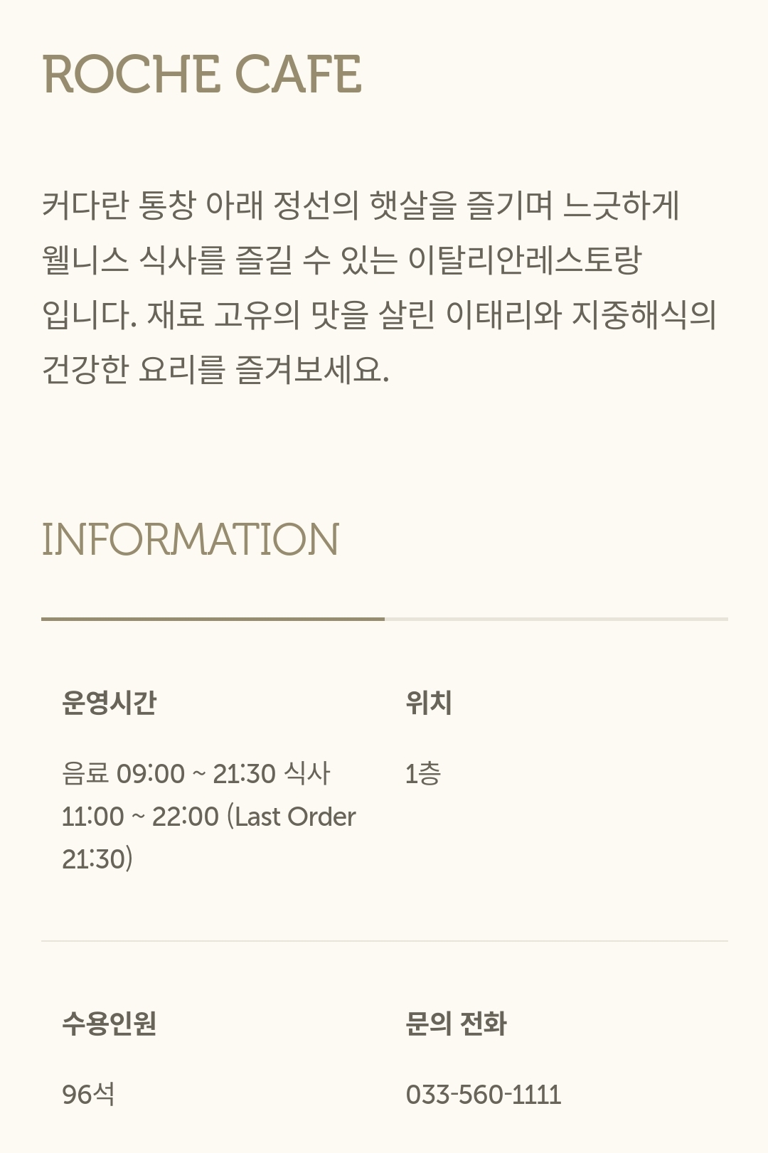호텔이 워낙 외진(?)곳에 있고, 근처에 식당이 마땅치 않다보니 호텔 내에 있는 로쉬카페 에서 점심과 저녁을 먹었어요.