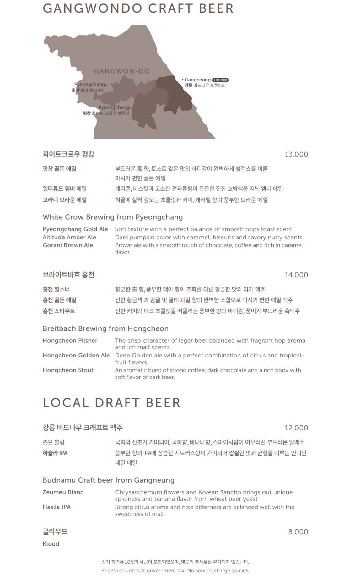화이트크로우 평창, 브라이트바흐 홍천 의 맥주가 있었고 강릉버드나무 크래프트 맥주 도 있더라구요.