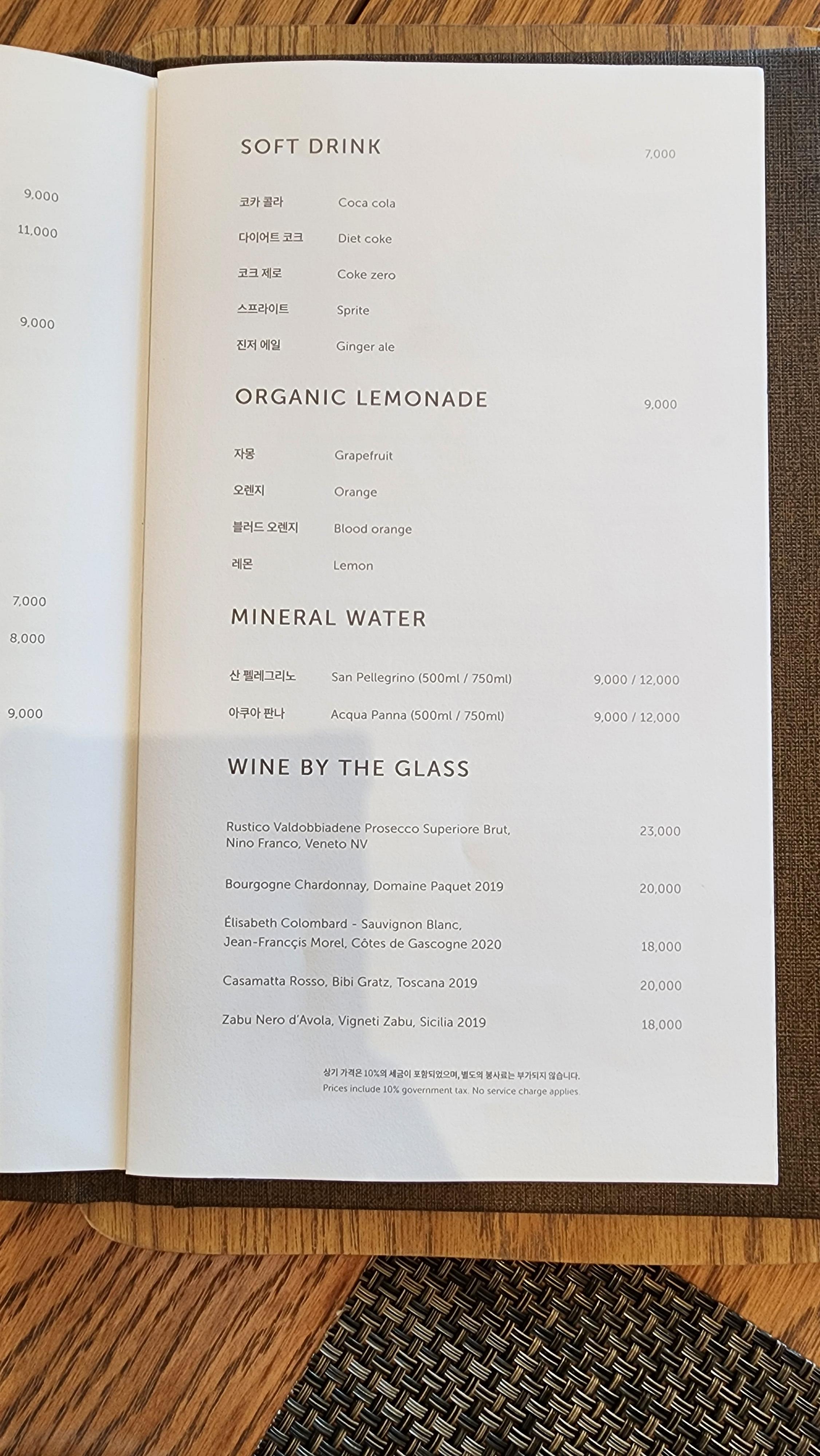 식사 메뉴와 음료메뉴가 같이 적힌 메뉴판을 주셨는데 저희는 식사메뉴만 주문했어요.