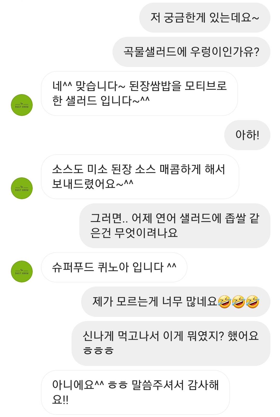 곡물샐러드 먹고나서 궁금했던건 또 dm 으로 여쭤봤었거든요.