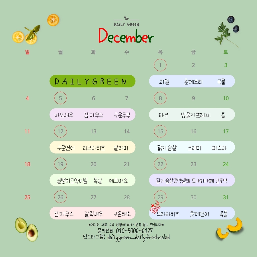 정기배송 샐러드에 관심이 생기셨다면! 요 아래 링크로 데일리그린 샐러드를 만나보세요!