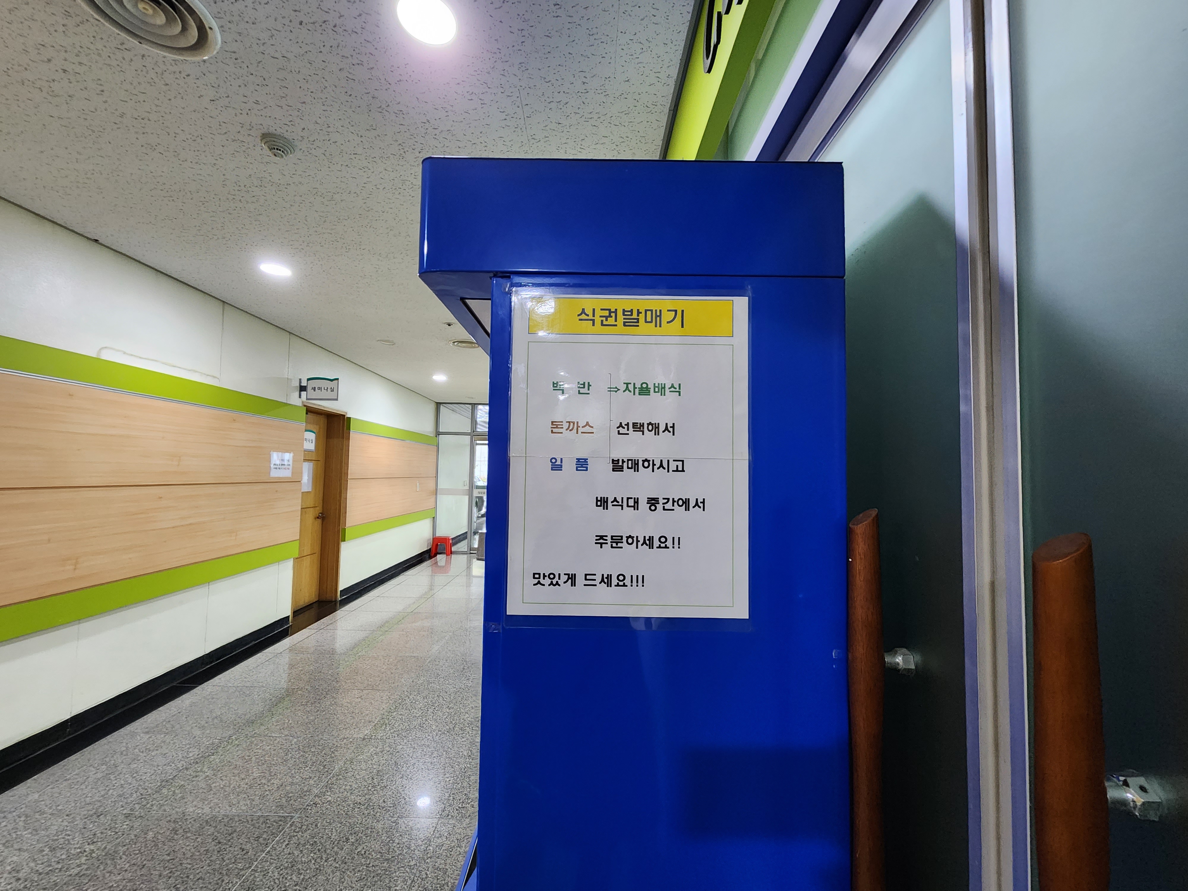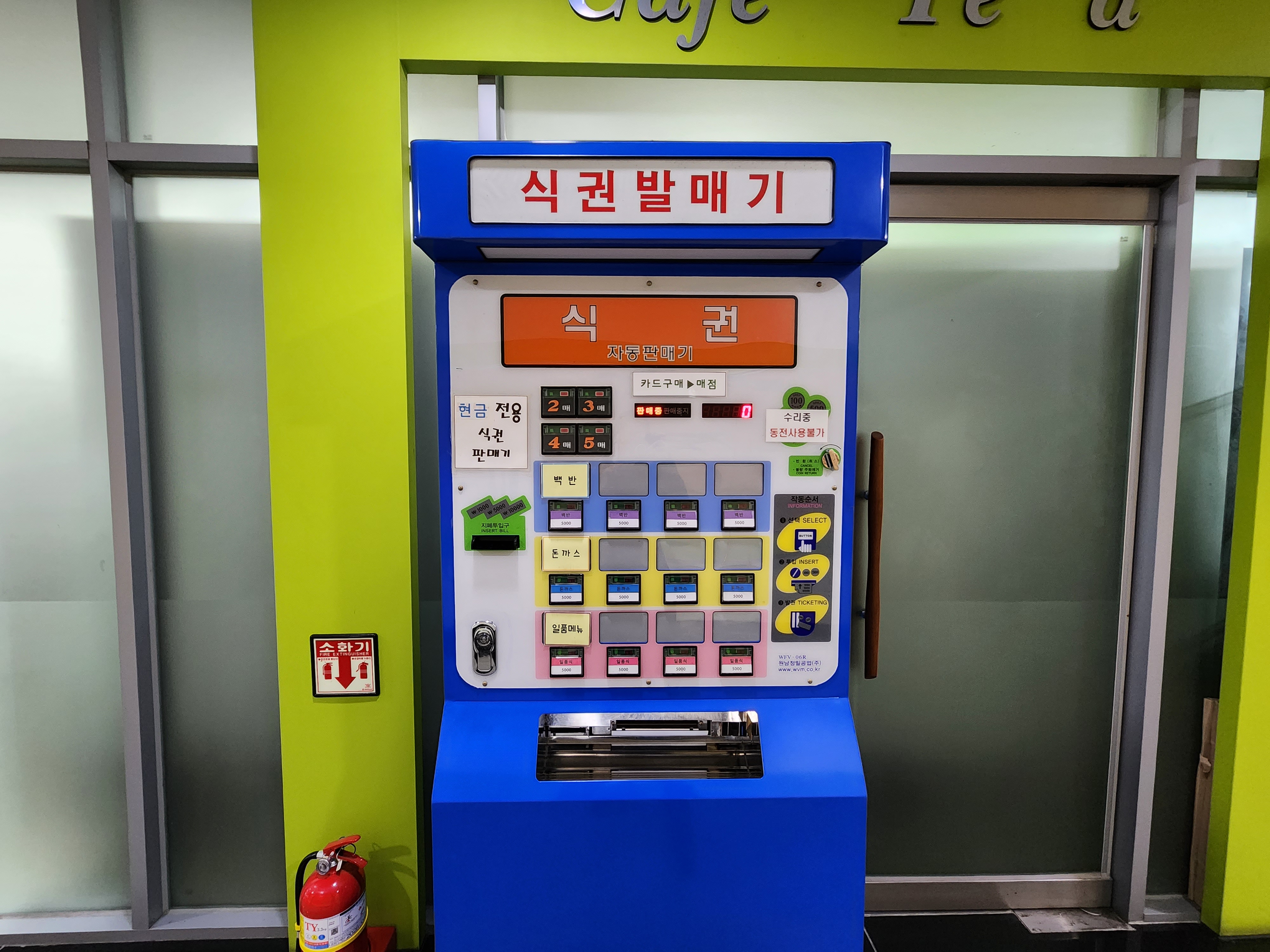 구내식당 앞에 식권발매기가 있는데요 현금전용이라 카드로 결제하려면 매점에 가서 식권을 사야 하더라구요.