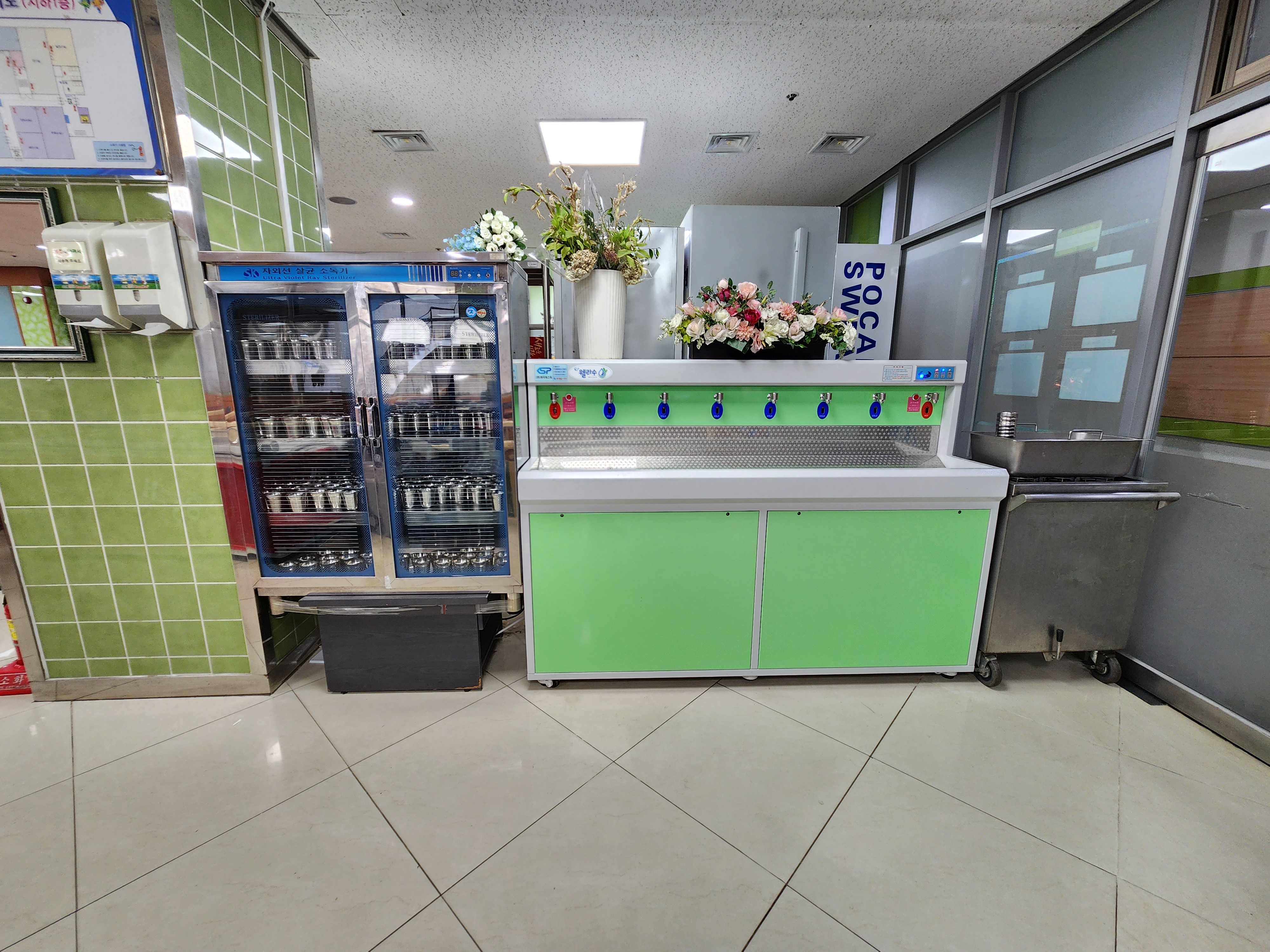식사 후 음수대 이용하실 수 있도록 마련 되어있었어요.