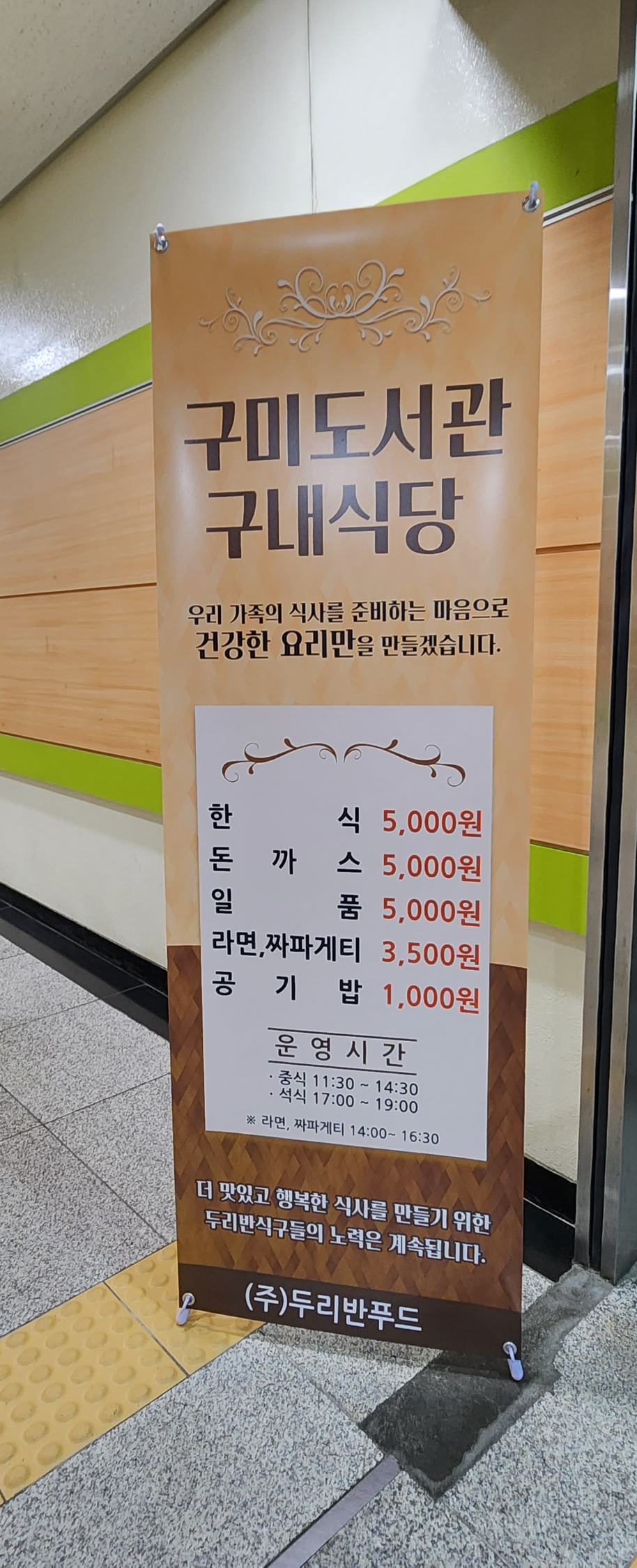 미금역 근처에서 혹시나 가성비 좋은 식사 하고 싶으신 분들은 구미도서관 구내식당 가보시길 추천해드리면서 포스팅을 마칠게요.