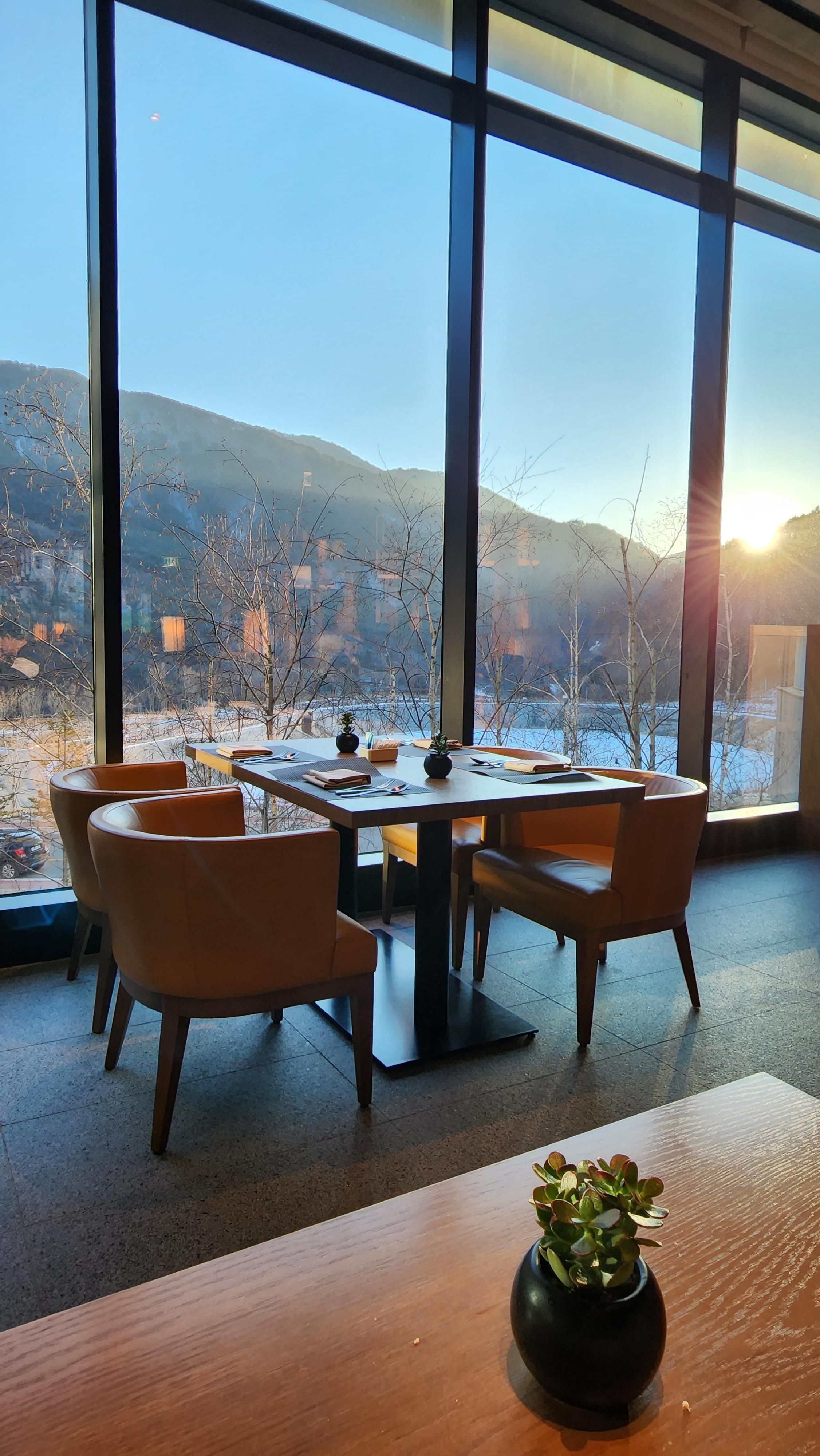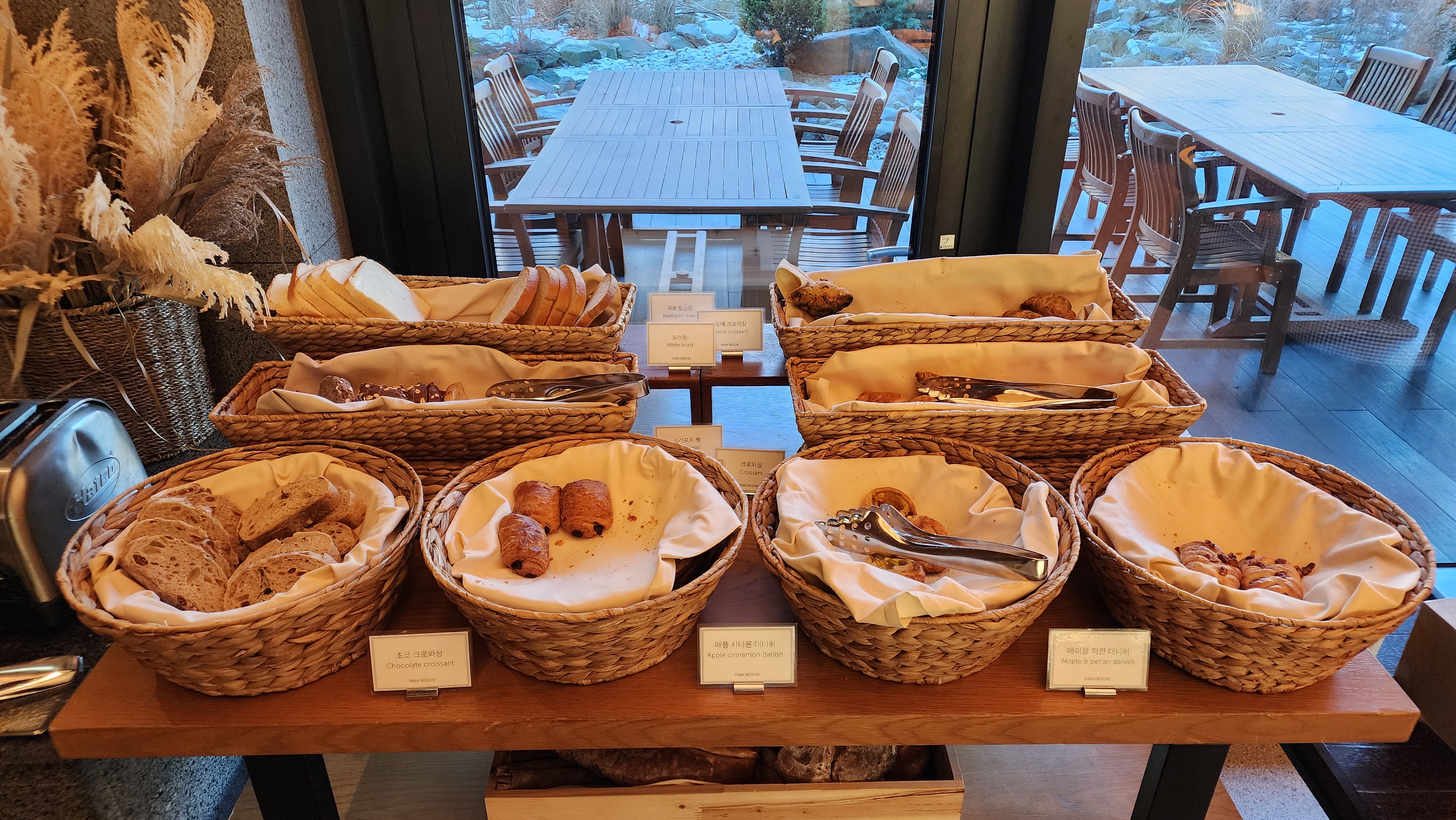 지금은 추워서 나가서 먹어볼 생각을 못하는데 날씨 좋을땐 바깥에서 조식 먹어도 좋을 것 같더군요.