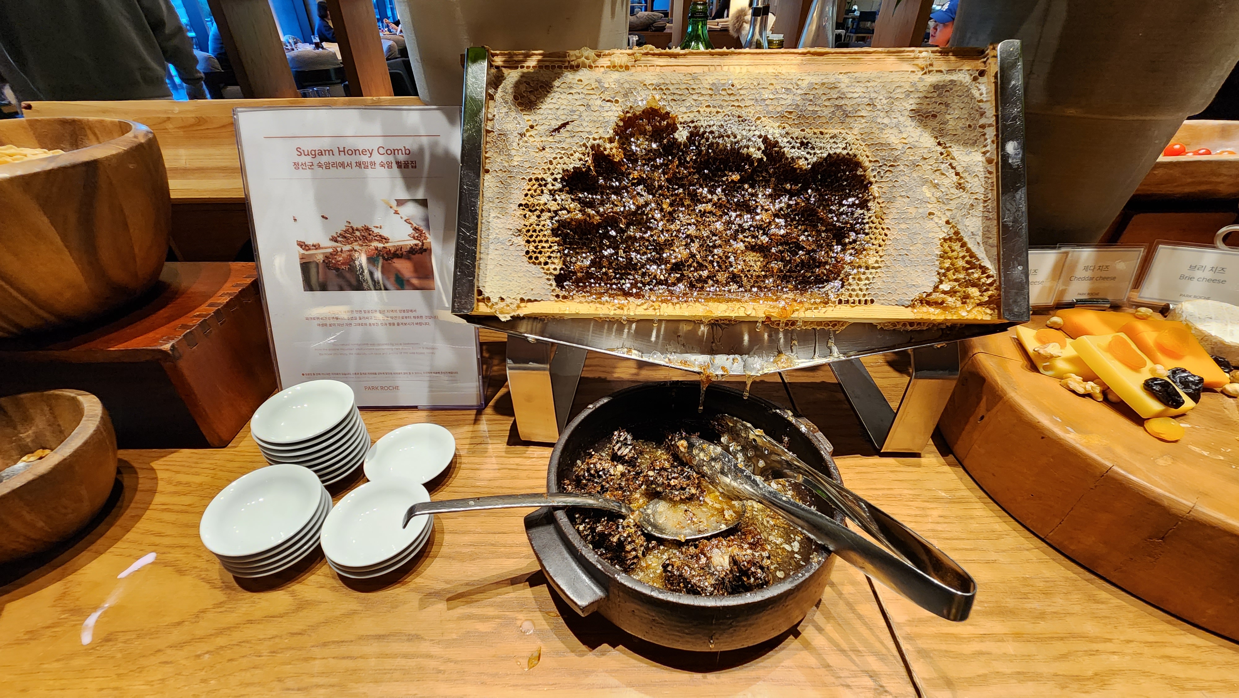 벌꿀집이 정말 특이했는데요, 떠서 가져오기 좀 번거롭고 맛도 무척 건강한 맛이라 조금만 맛봤어요.