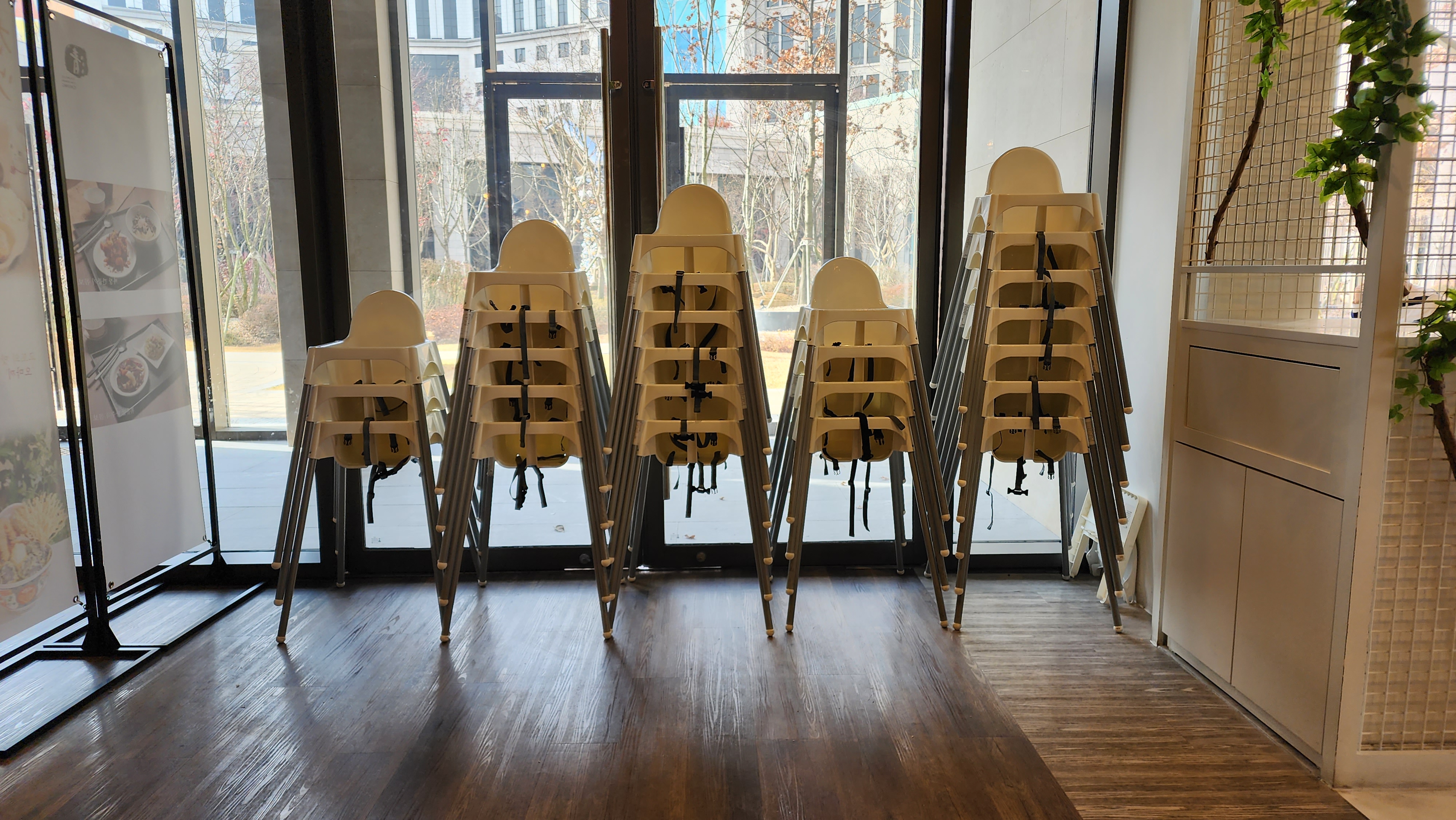 채광 잘 되는 식당자리와 함께 유아 의자들도 정말 많이 준비되어있더라구요.