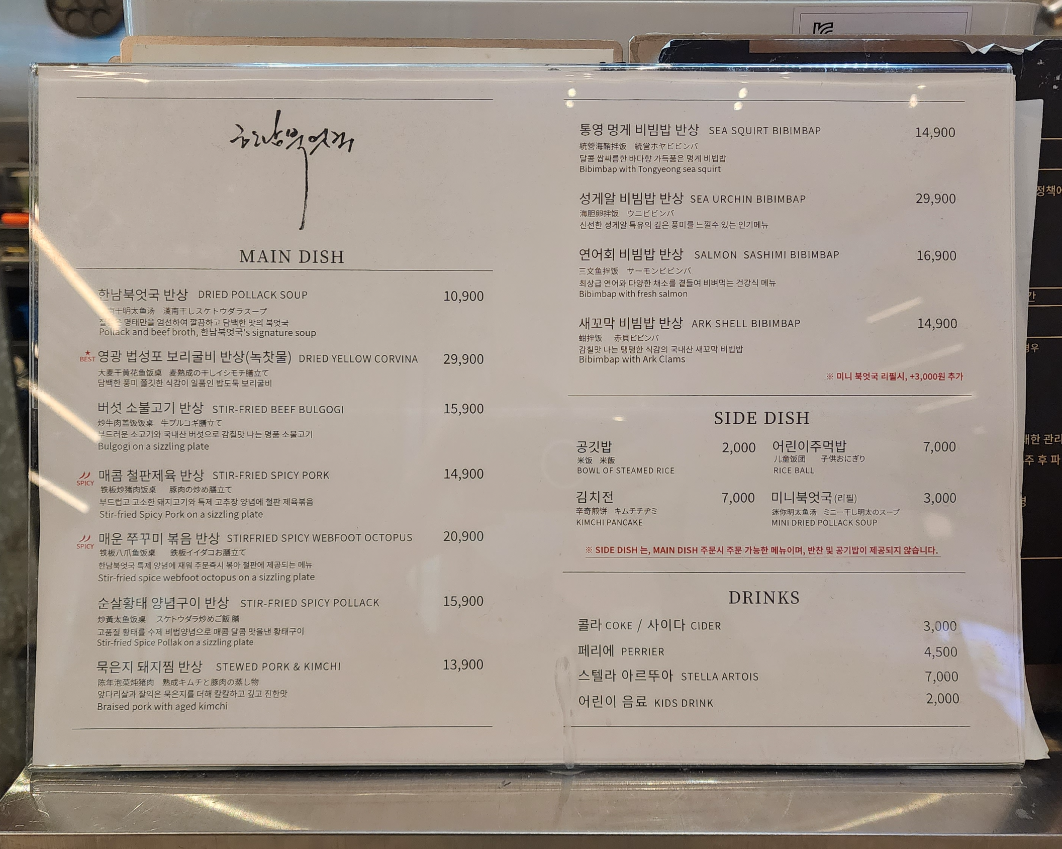 이 곳에서 한남북엇국, 청, 파이어벨, 오마끼, 앤드커피랩 을 이용했어요.