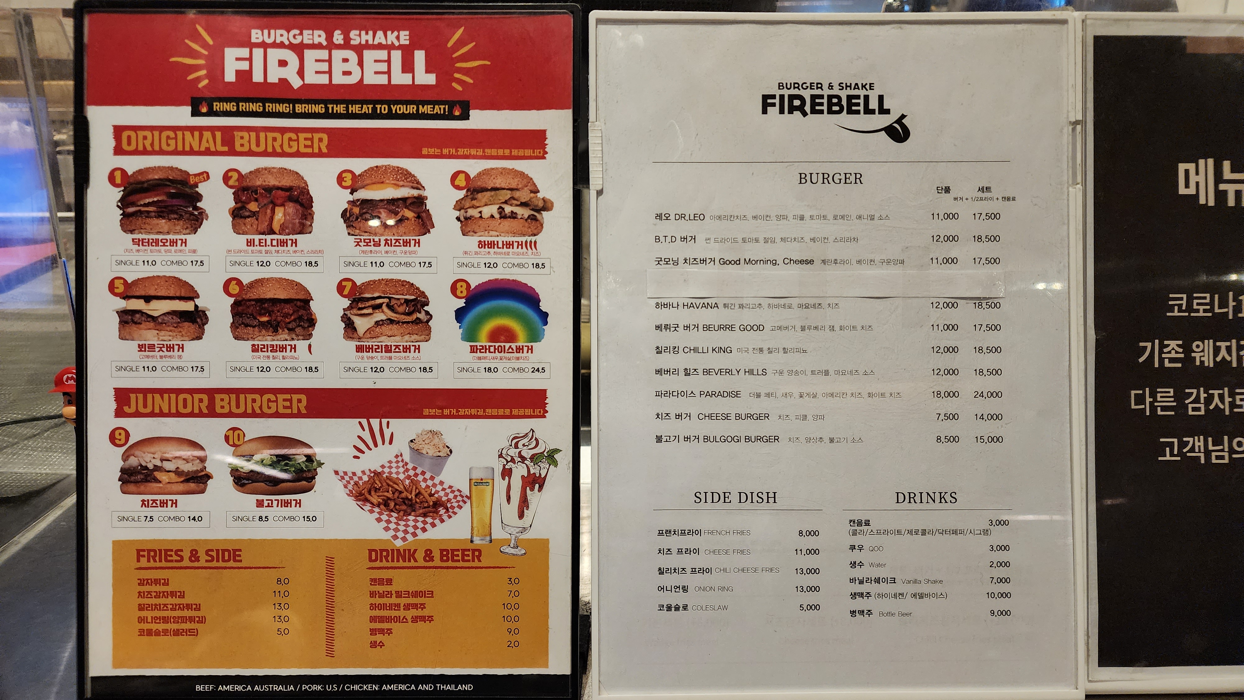 파이어벨 햄버거도 엄청 실하더라구요.