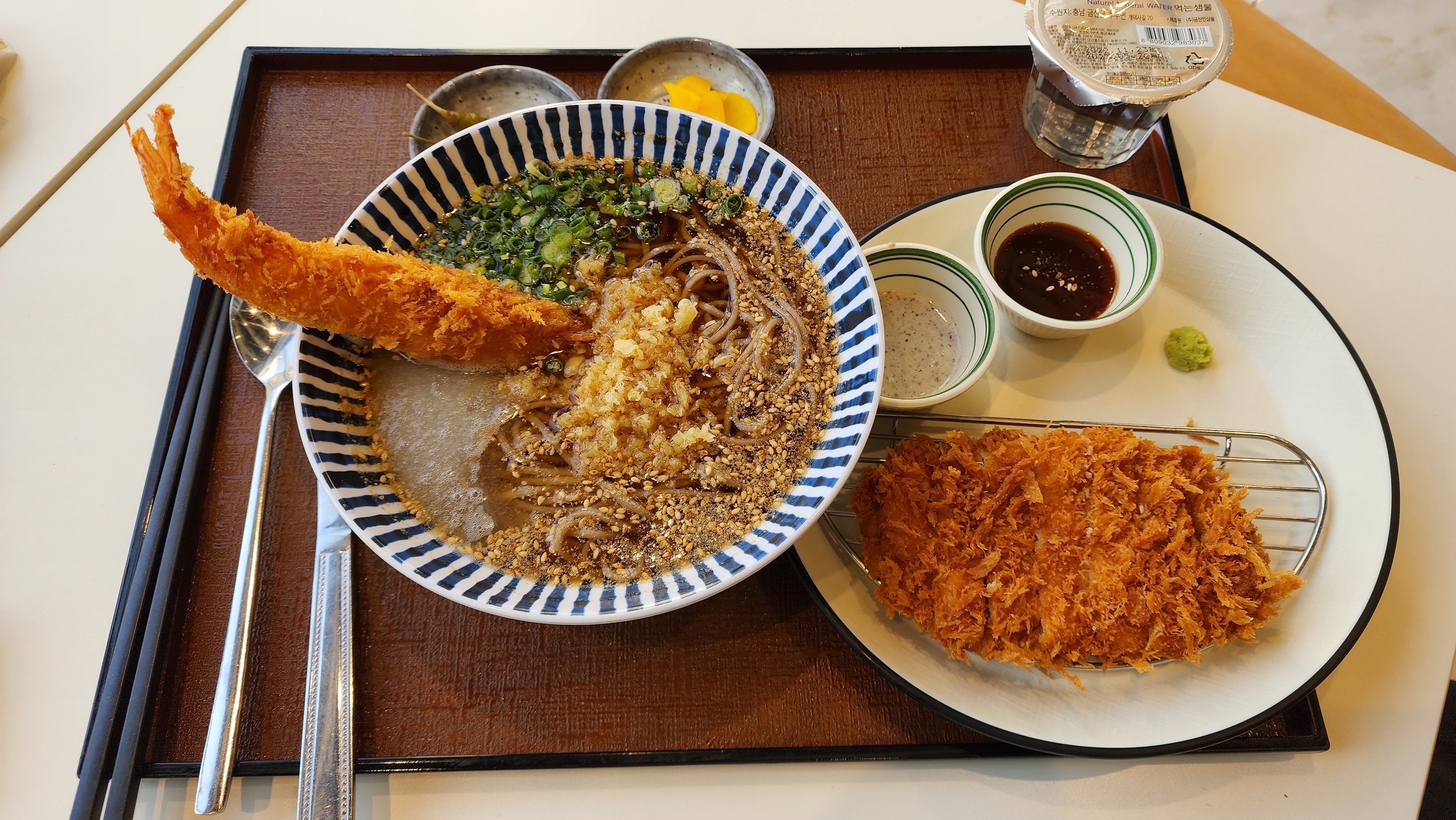 냉소바+새우튀김+한돈돈카츠 가 나오는 메뉴였는데 깔끔하게 나오더라구요.