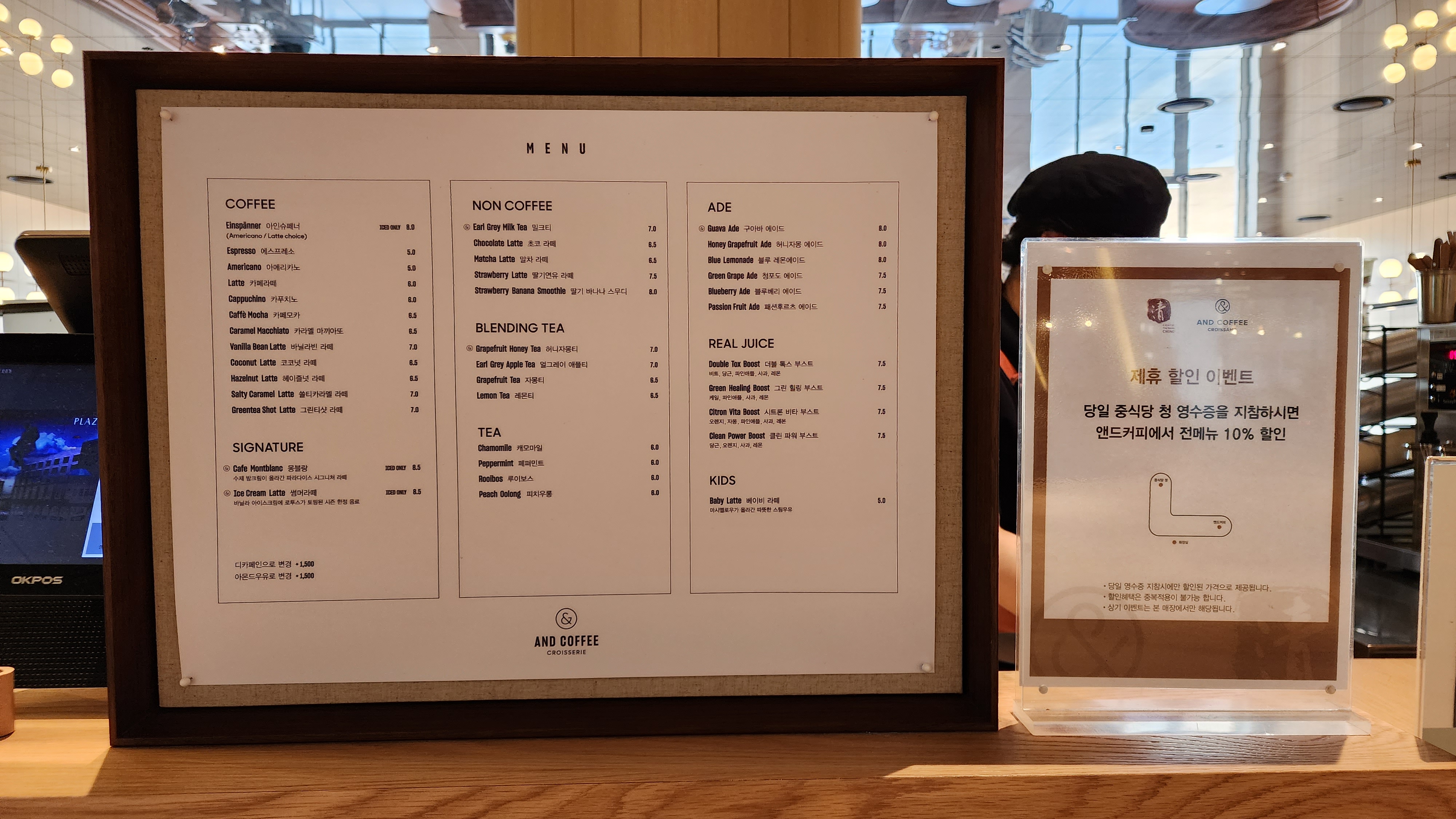 팁이라고 한다면 당일 중식당 청 에서 식사한 영수증을 지참하면 앤드커피랩에서 전메뉴 10% 할인을 받을 수 있어요.