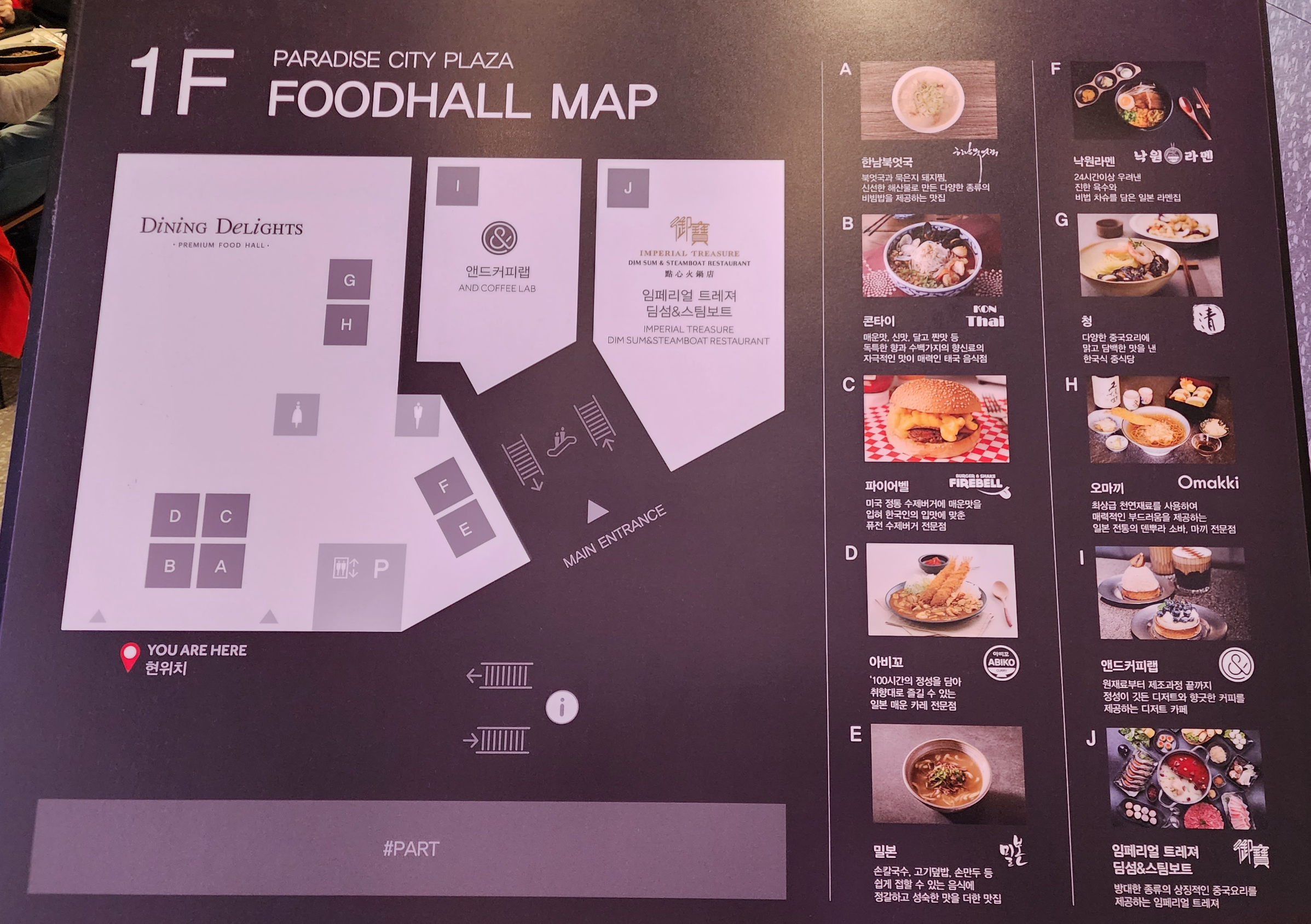 푸드홀 은 파라다이스 시티 프라자 1층에 위치해 있고 꽤 다양한 식당이 입점되어 있어요.