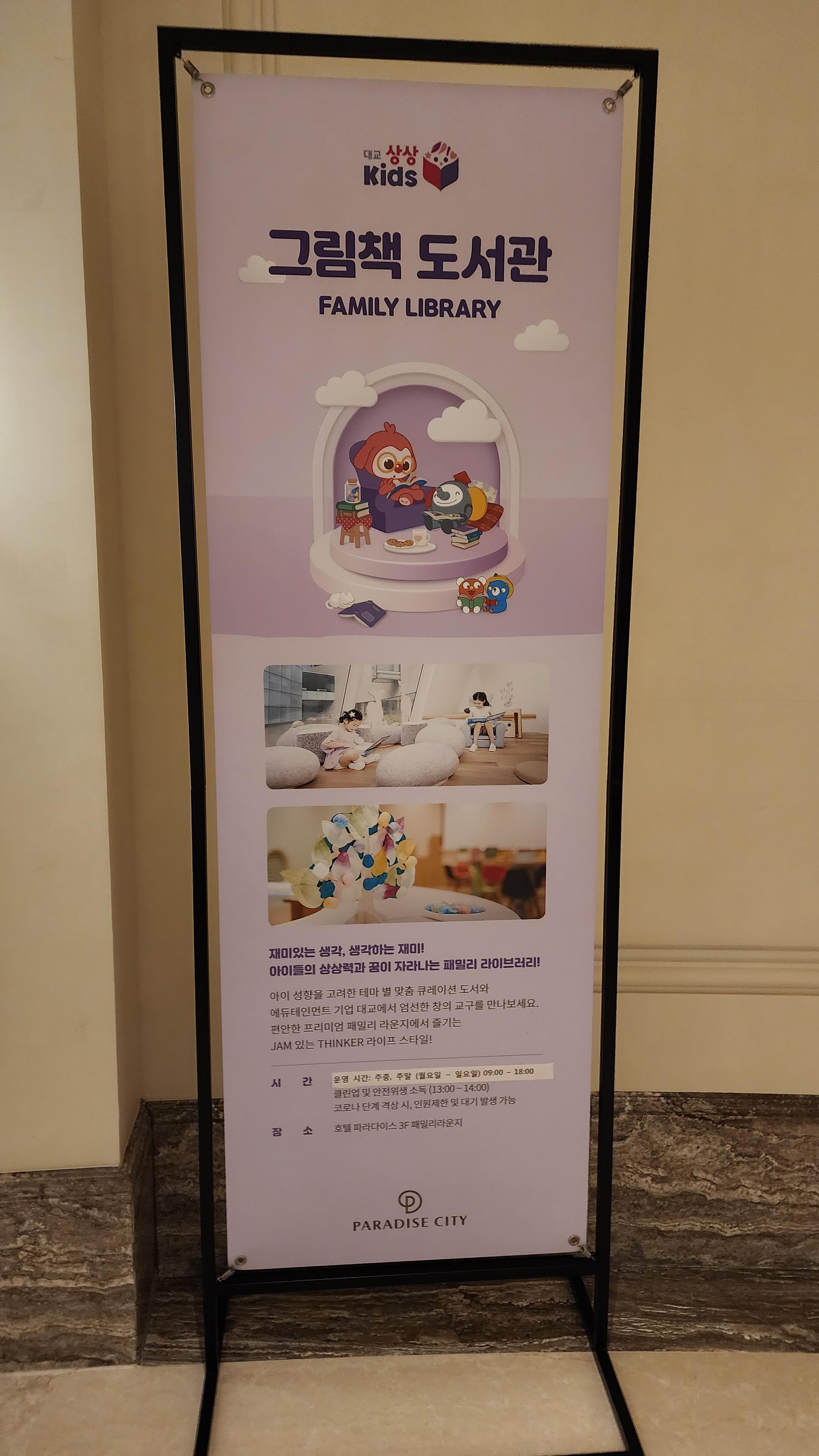 대교와 파라다이스 시티가 함께 만든 공간으로 다양한 그림책들이 있었고 아이들이 책 보며 시간 보내기에 무척 예쁘게 꾸며져 있던 공간이었어요.