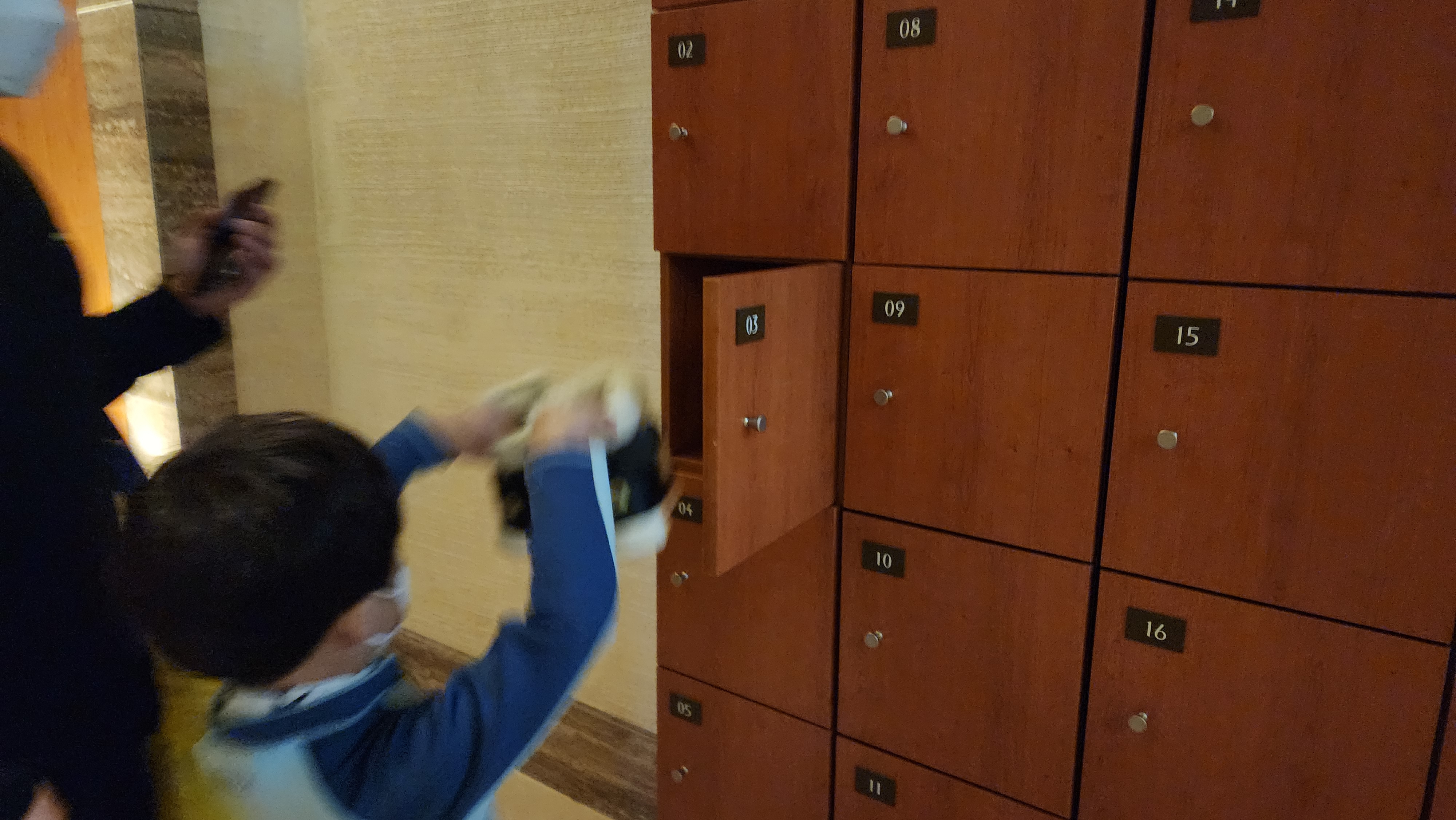 투숙객 확인 후 라커룸 키를 받을 수 있는데요, 수영복은 객실에서 미리 환복 후 가는게 좋아요.